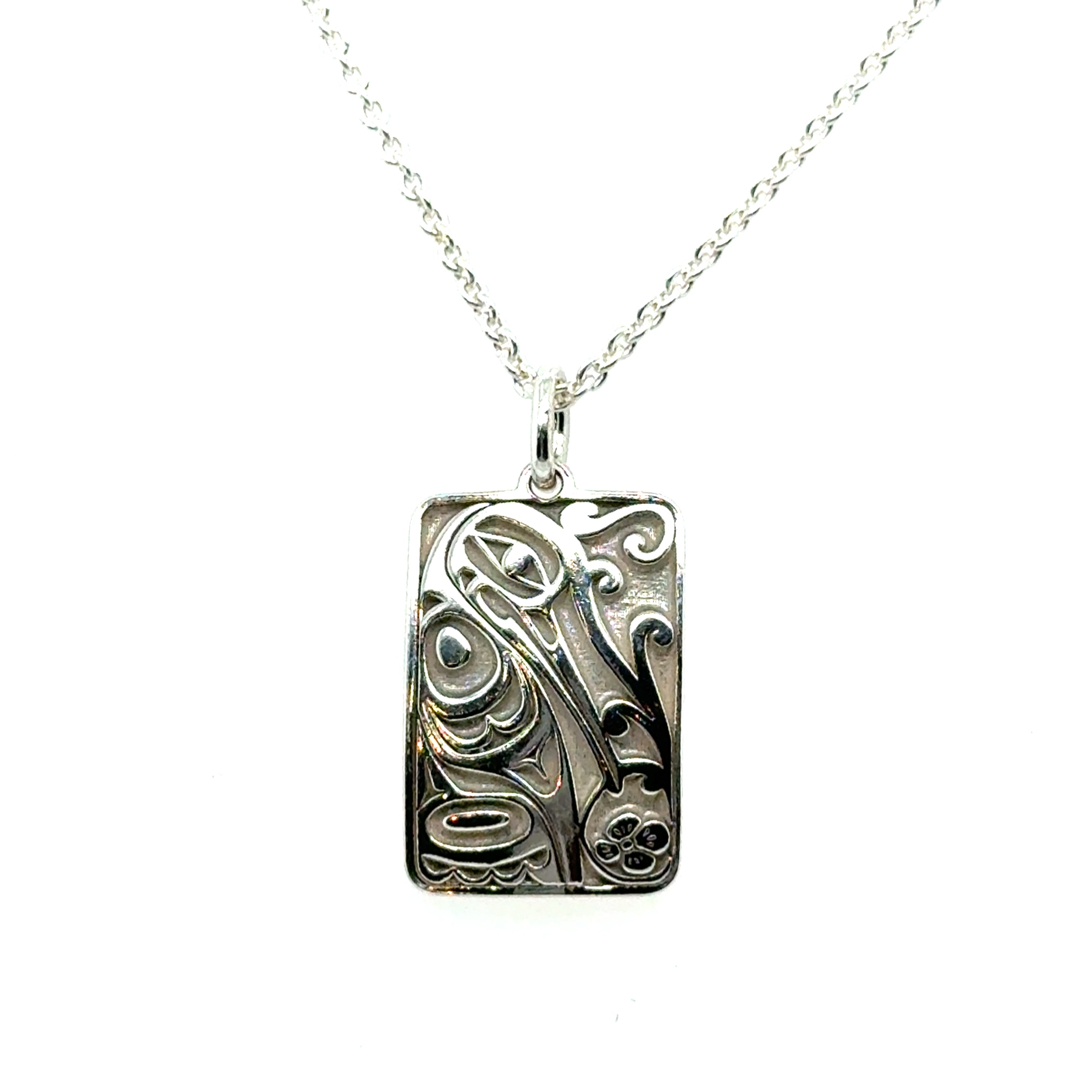 Pendant - Sterling Silver - Rectangle - Hummingbird - 25mm