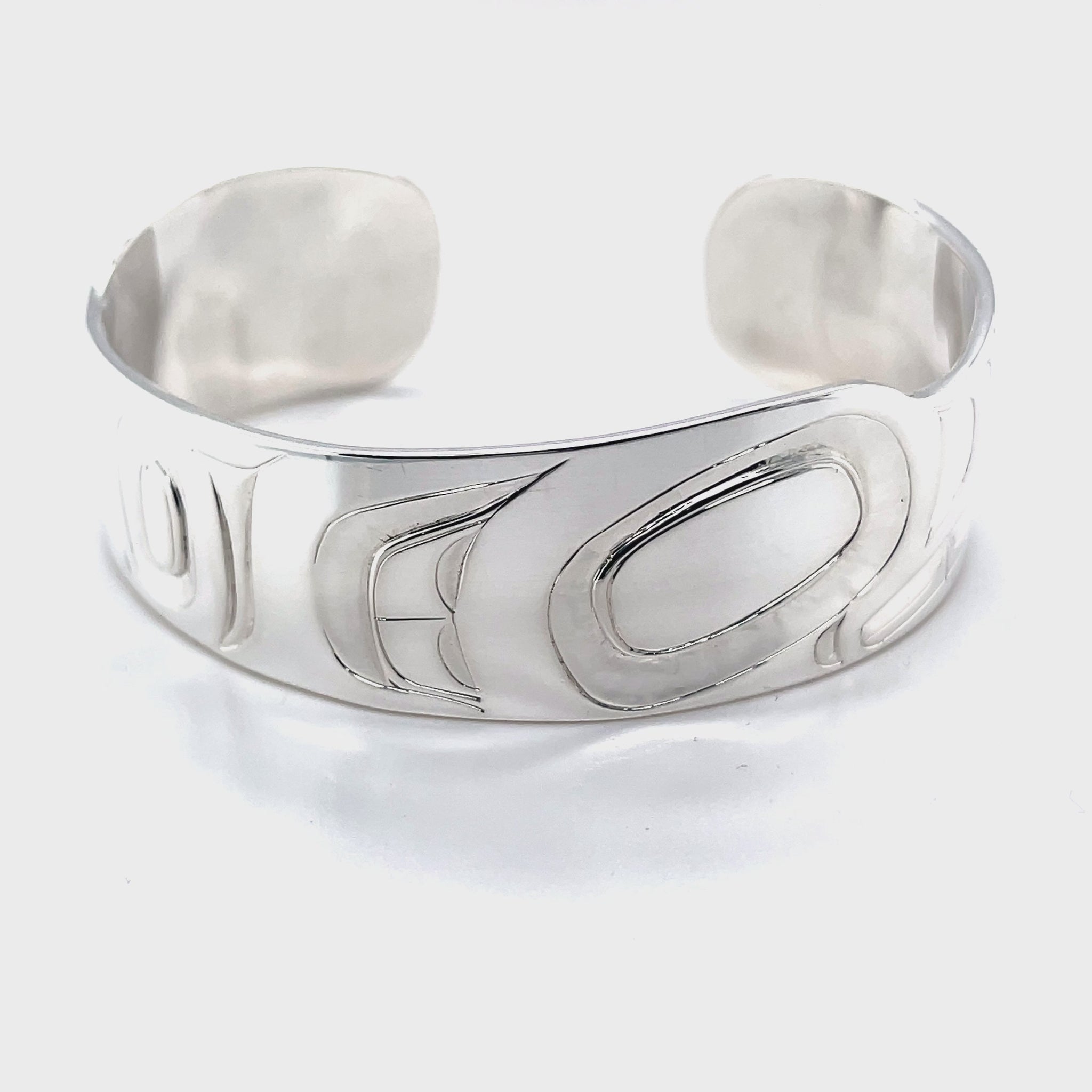 Handcrafted sterling silver bracelet by Haida artist Alvin Adkins.