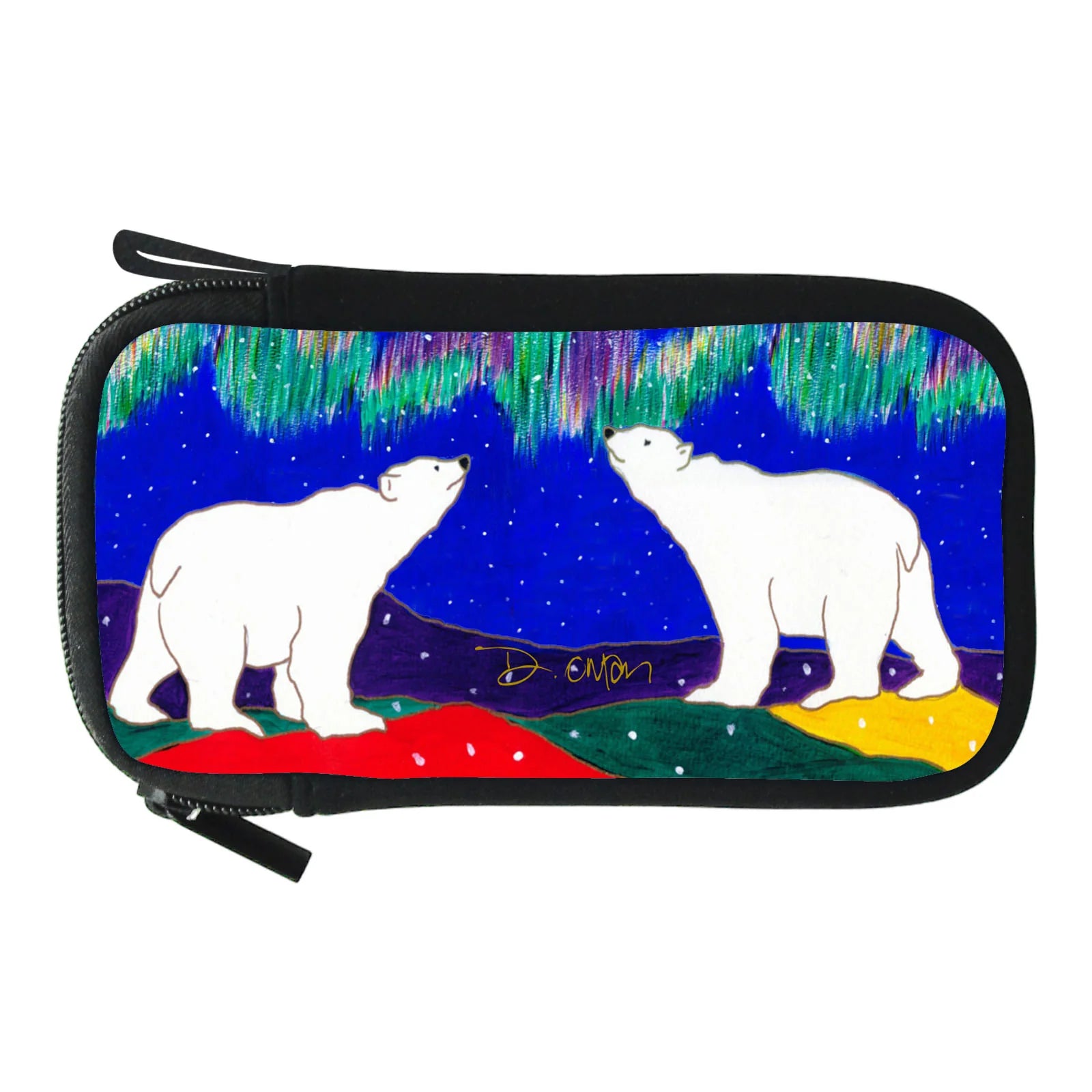 Neoprene case with zipper closure, perfect for storing eyeglasses, stationary, charging cables, and other accessories.