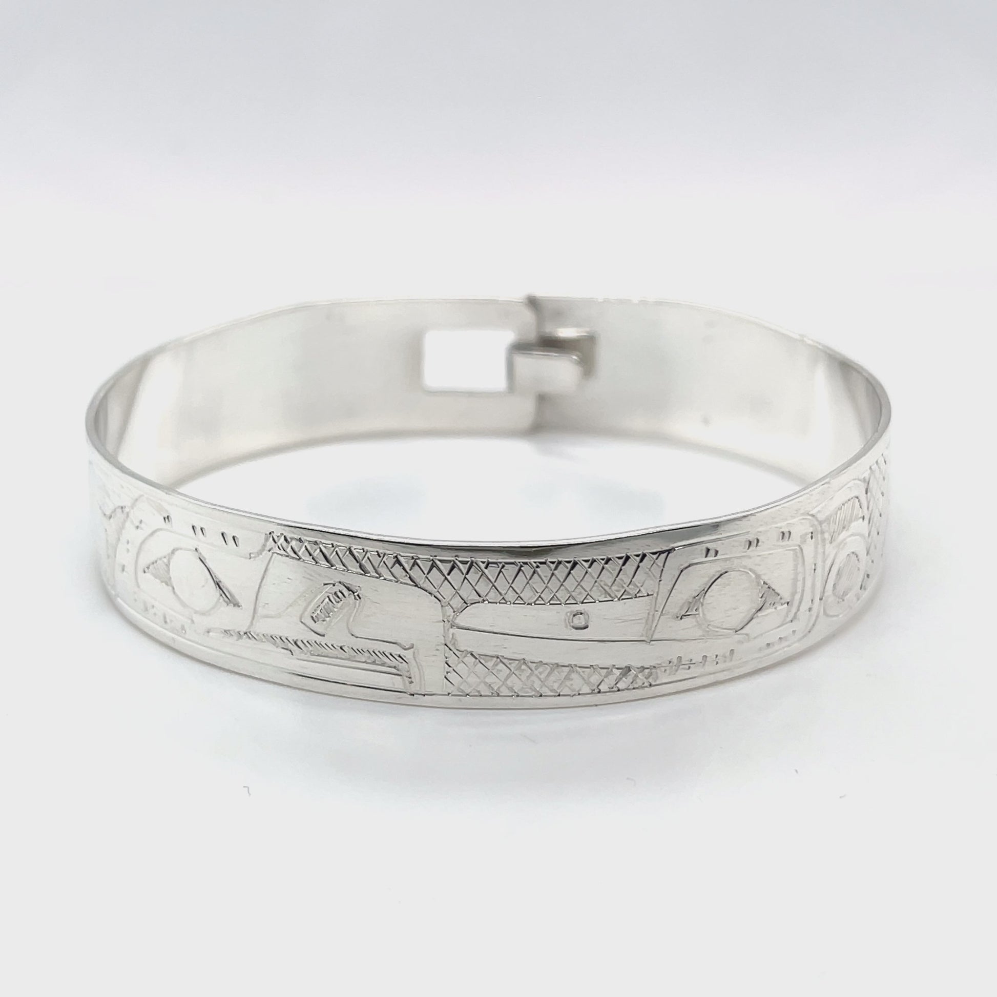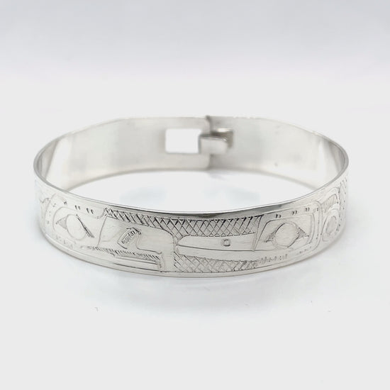 Handcarved and crafted sterling silver bangle by Gilbert Pat.