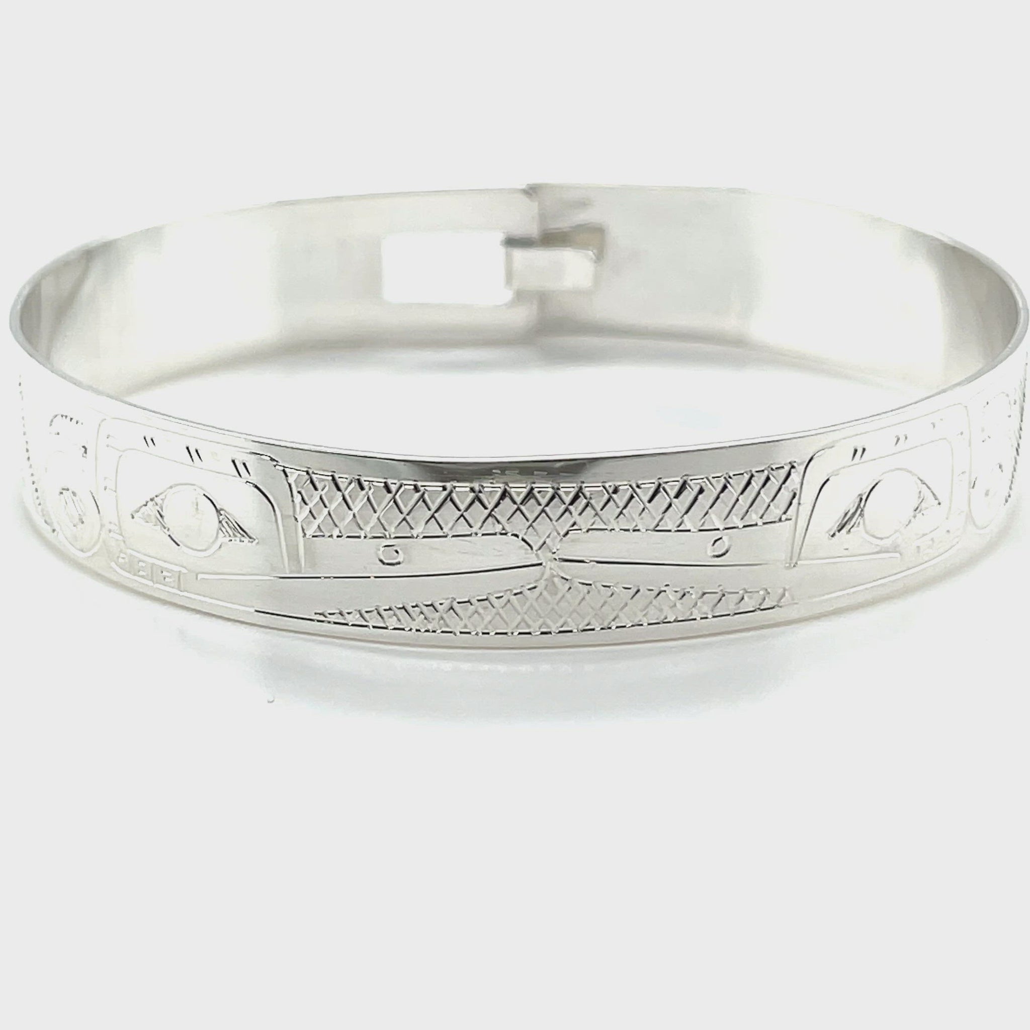 Handcarved and crafted sterling silver bangle by Gilbert Pat.