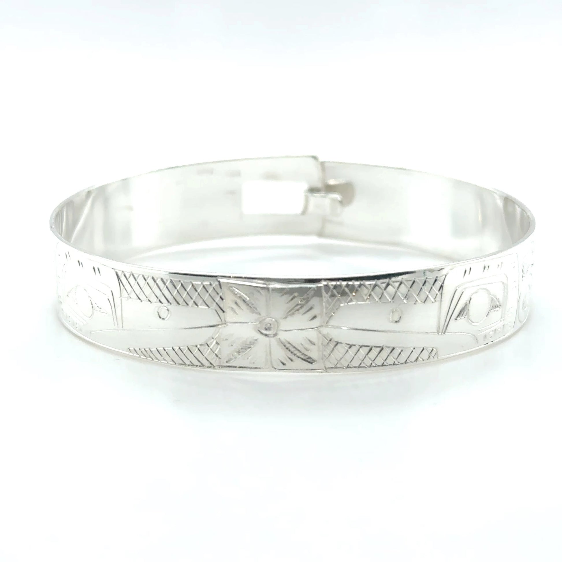 Hand-carved and crafted sterling silver bangle by Gilbert Pat.