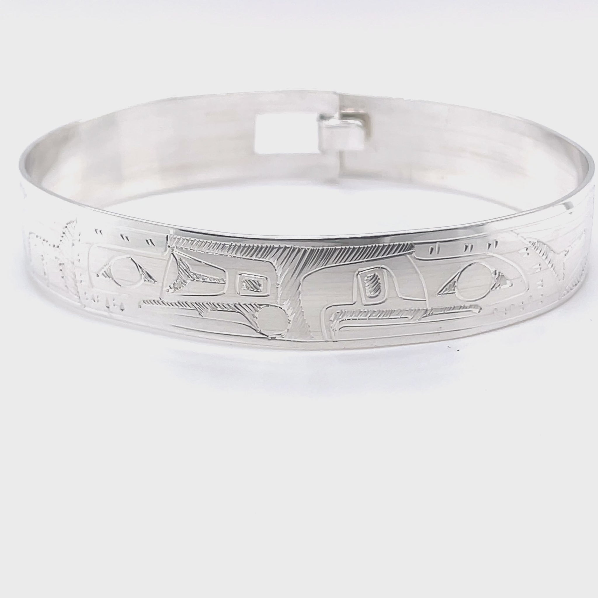 Handcarved and crafted sterling silver bangle by Gilbert Pat.