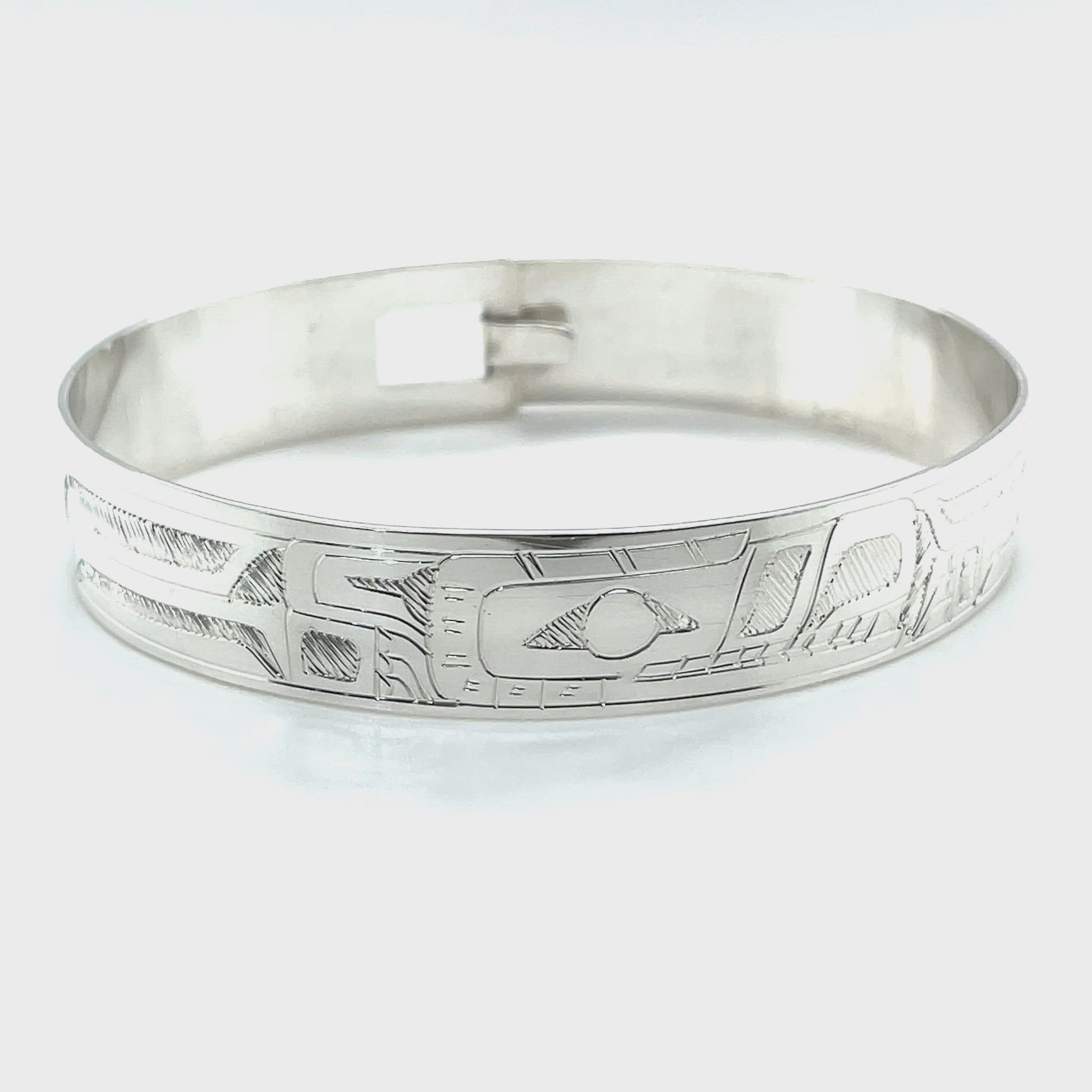 Handcarved and crafted sterling silver bangle by Gilbert Pat.