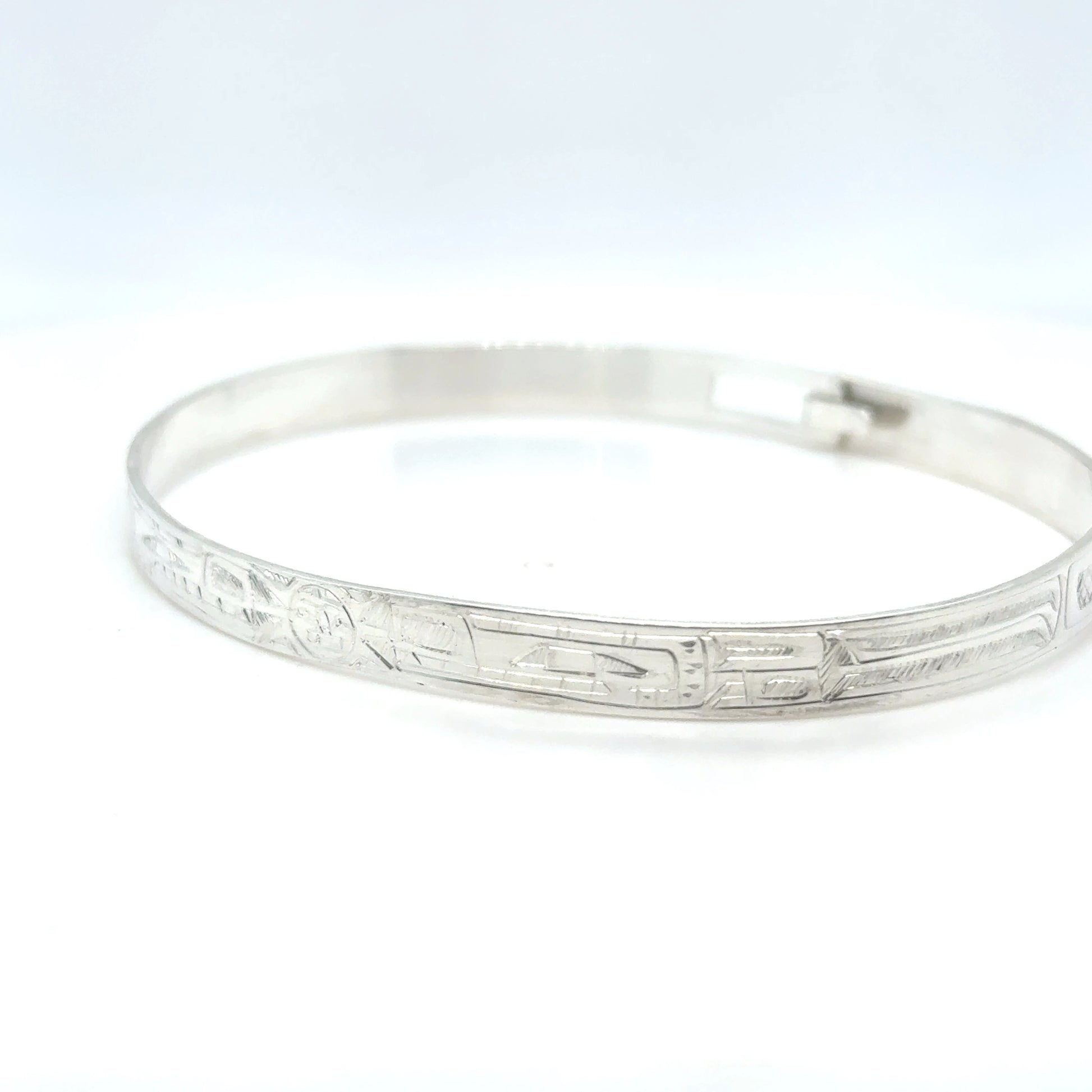 Hand-carved and crafted sterling silver bangle by Gilbert Pat.