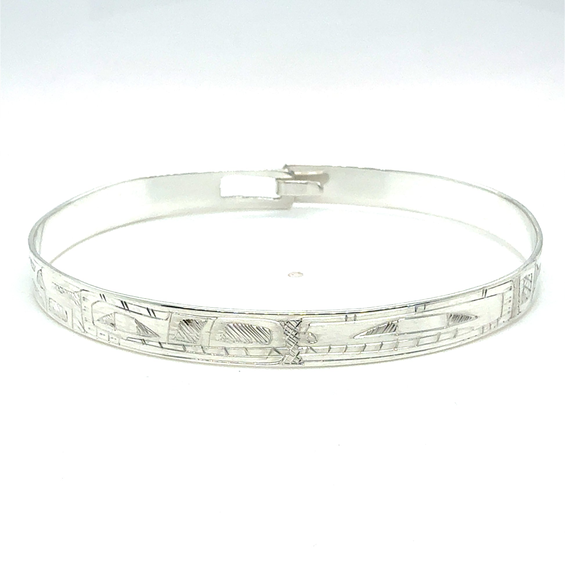 Handcarved and crafted sterling silver bangle by Gilbert Pat.