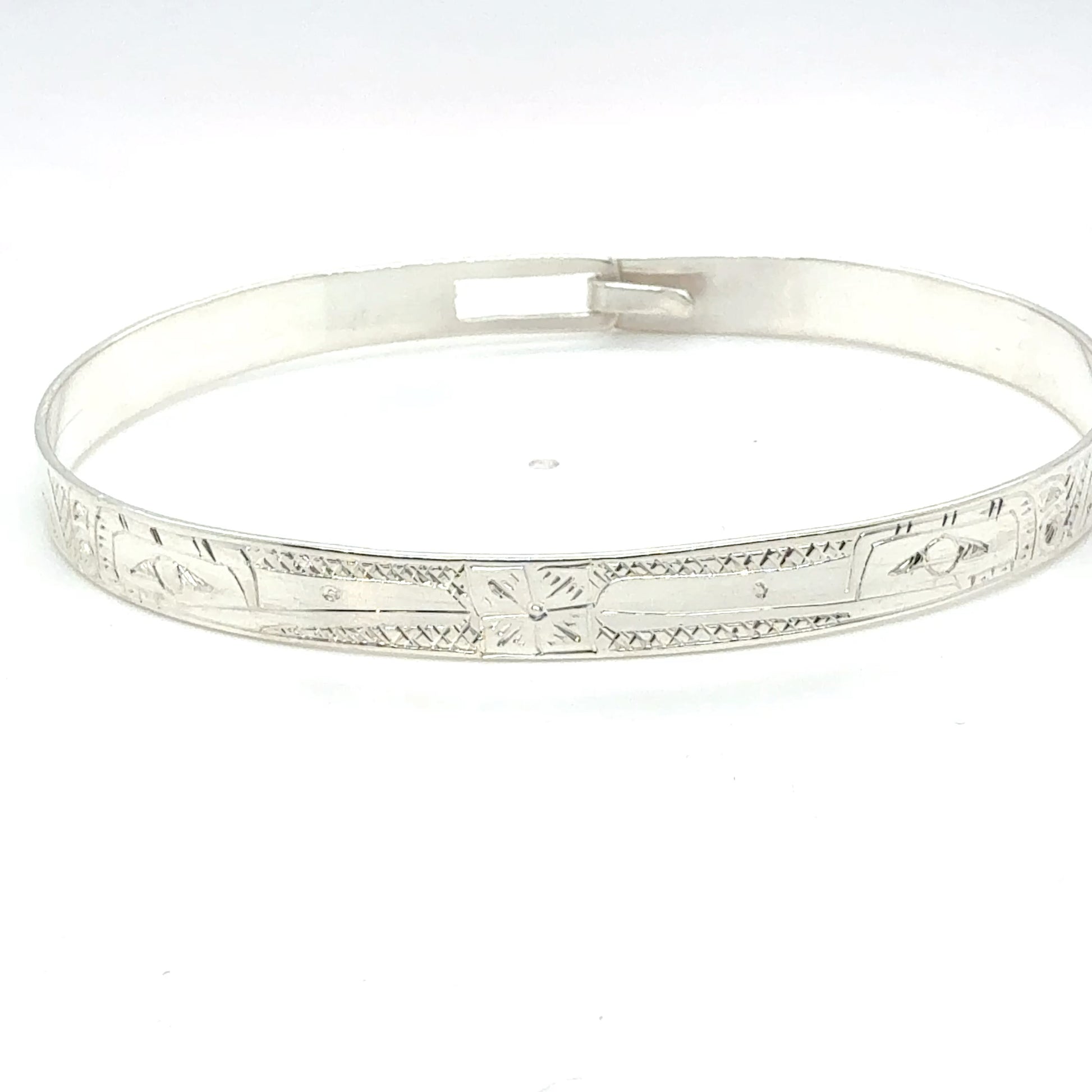 Hand-carved and crafted sterling silver bangle by Gilbert Pat.