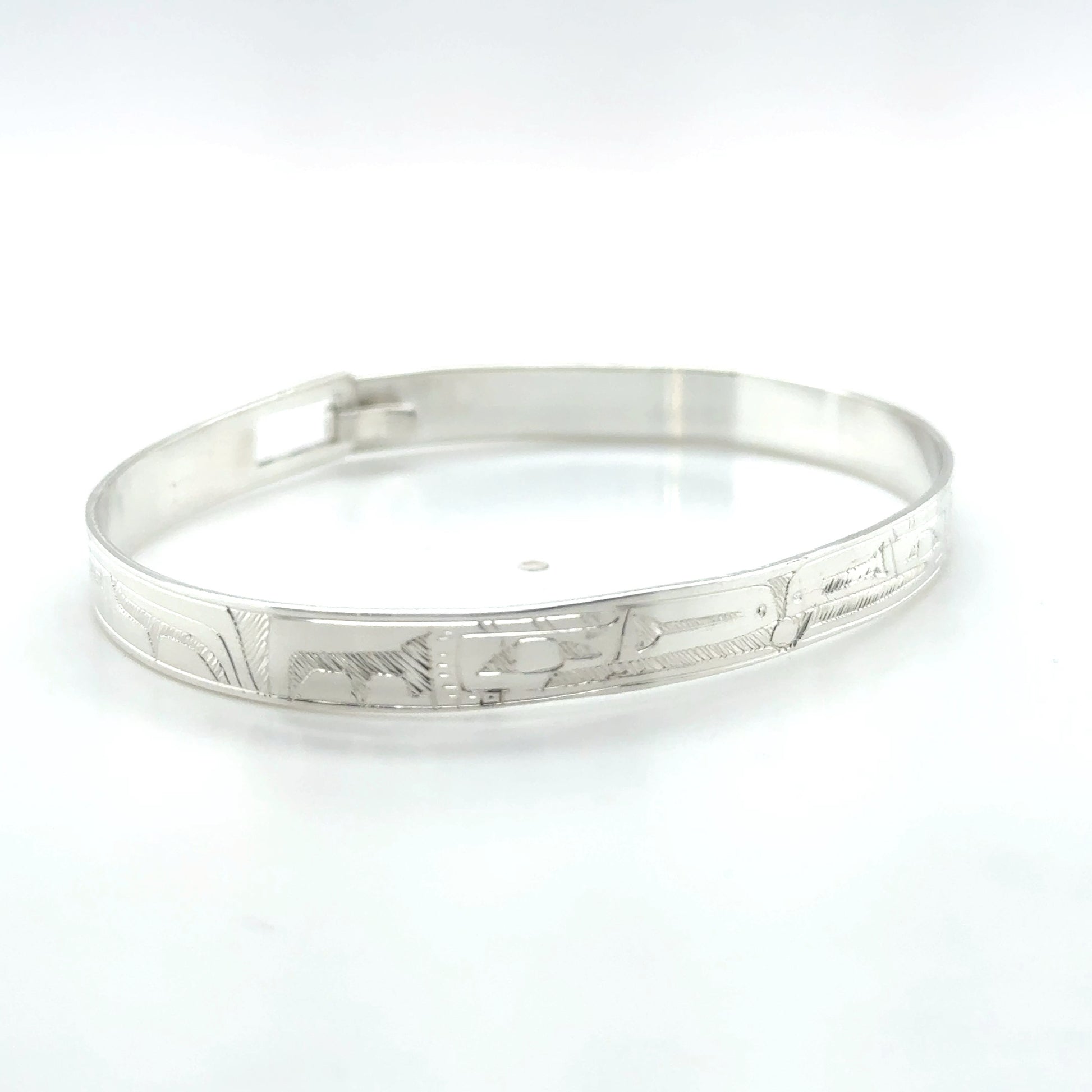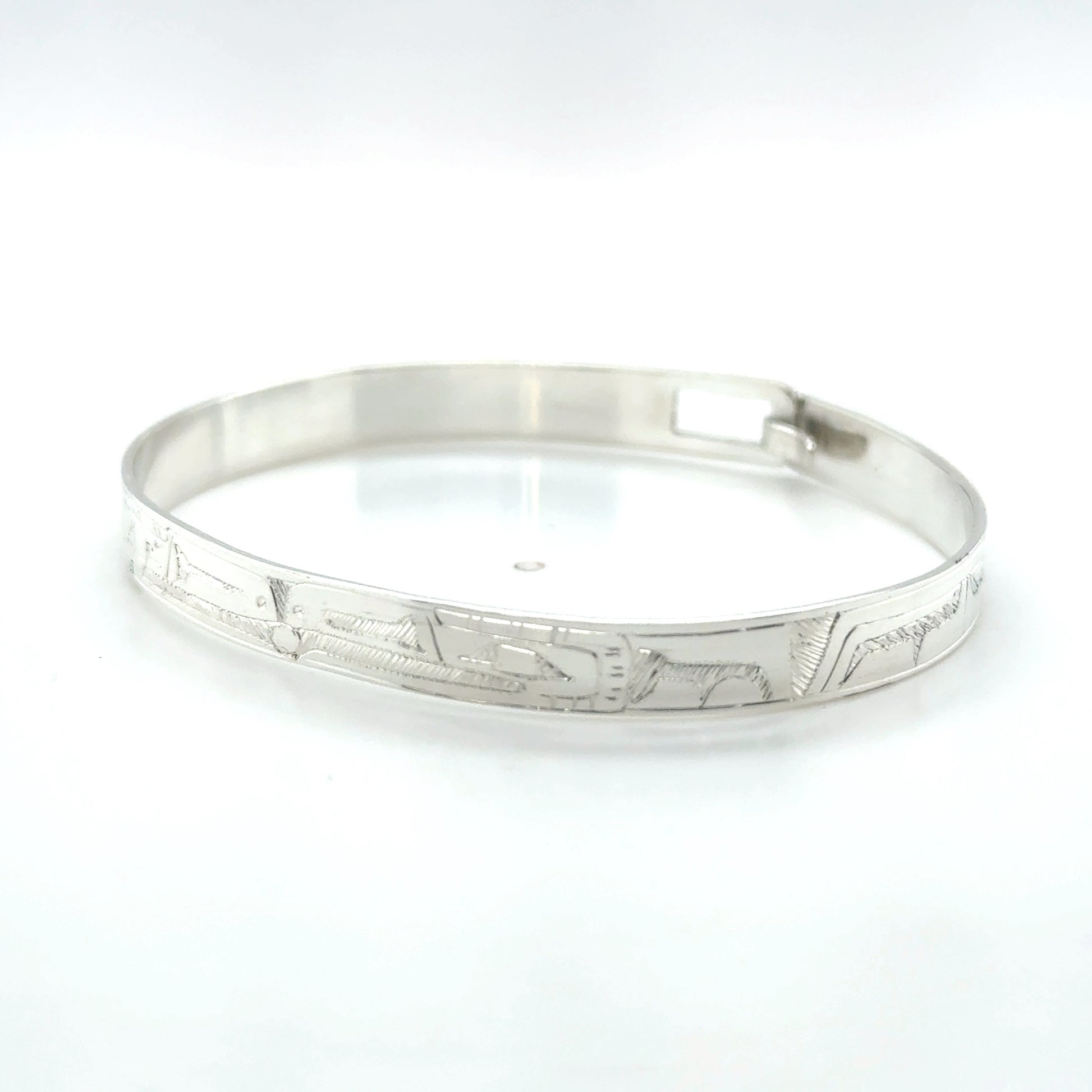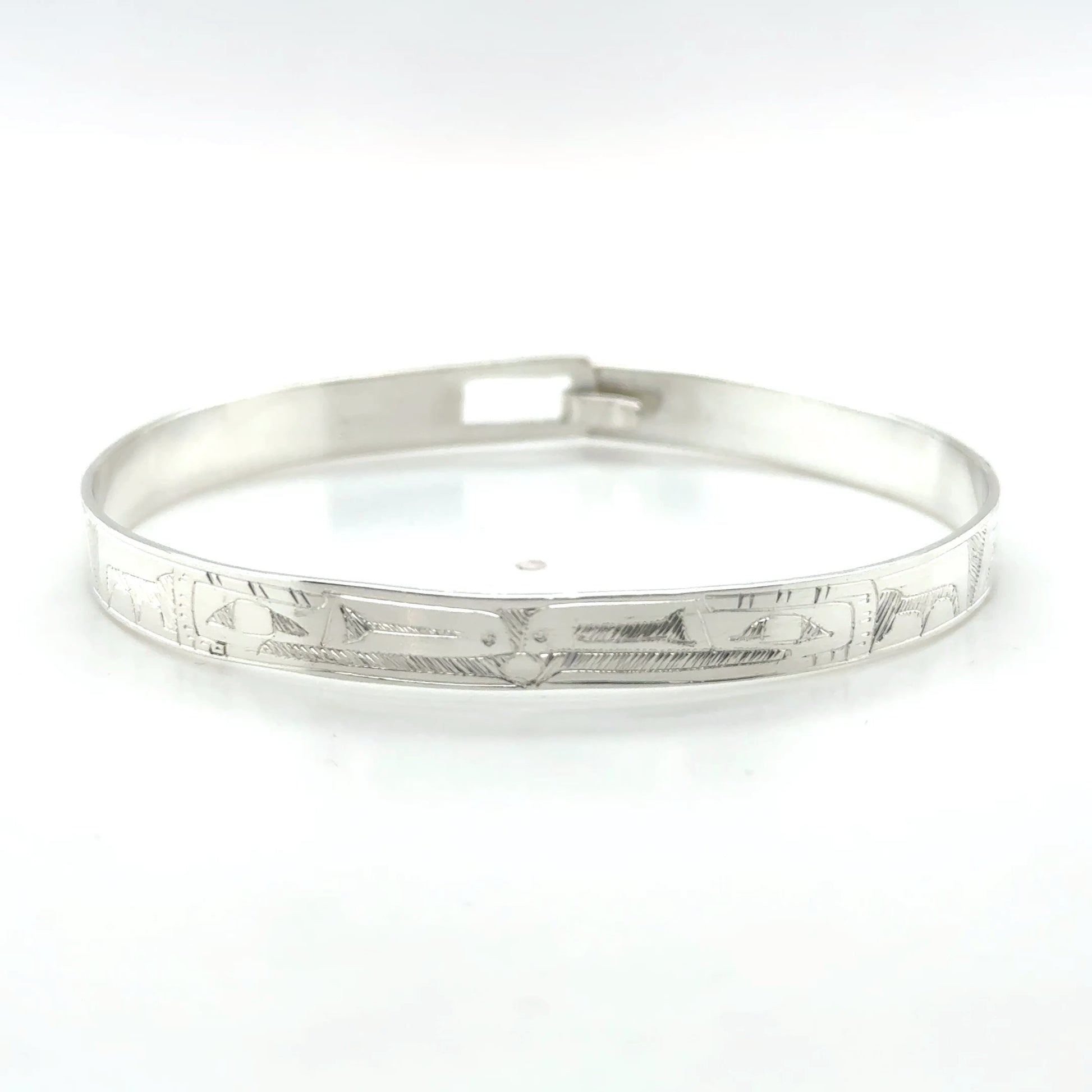 Hand-carved and crafted sterling silver bangle by Gilbert Pat.