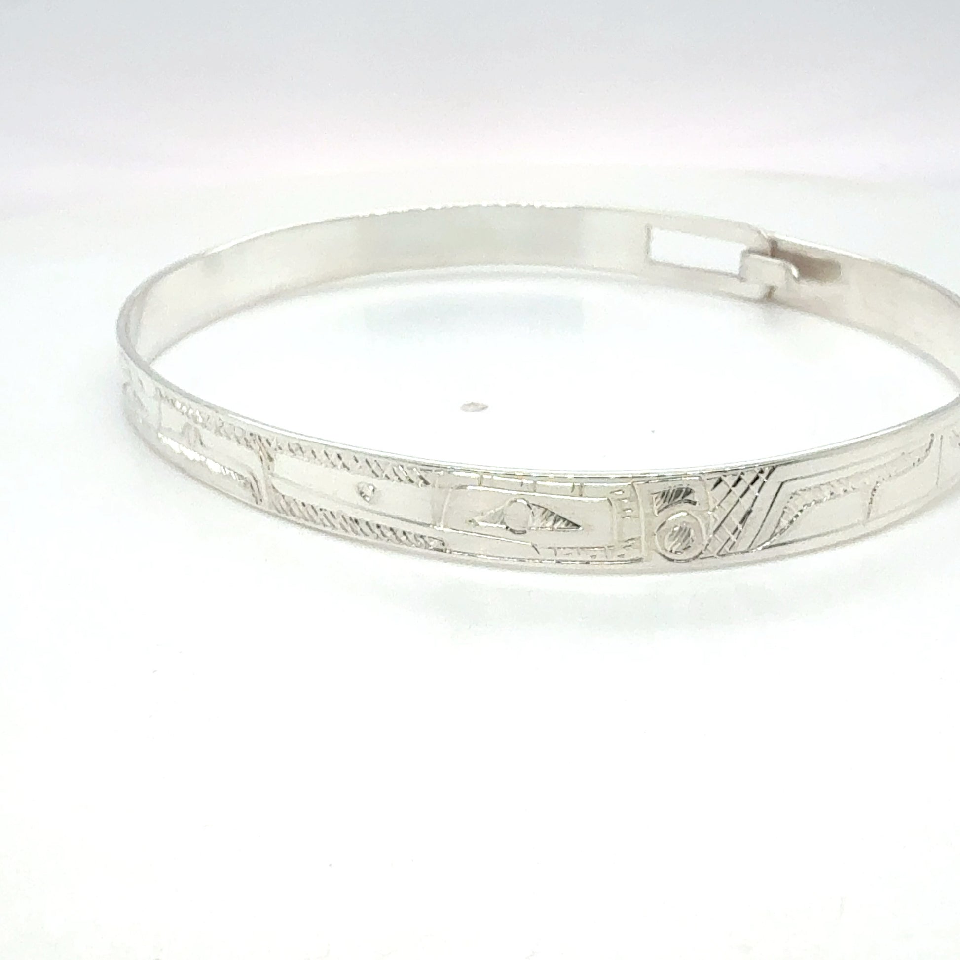 Hand-carved and crafted sterling silver bangle by Gilbert Pat.