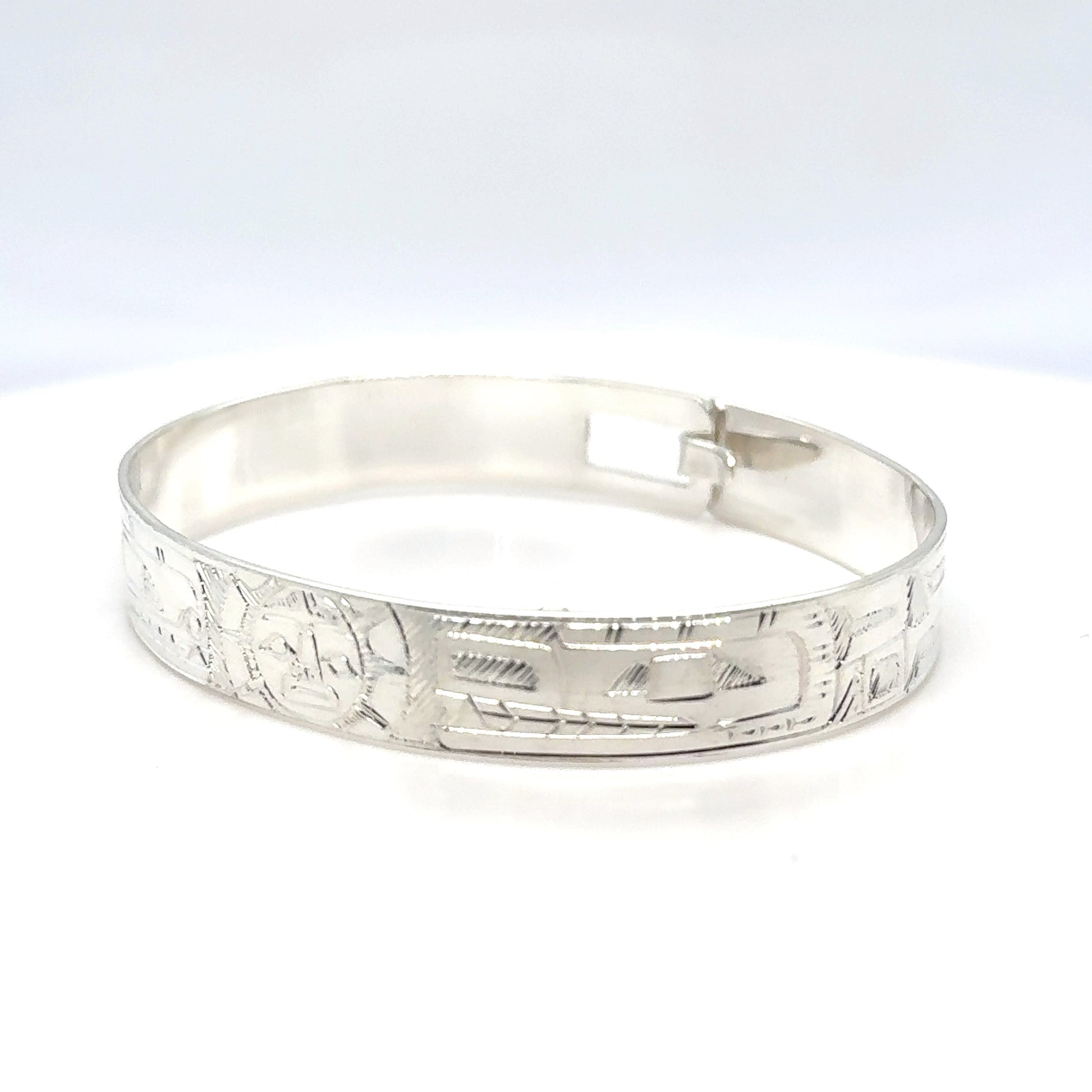 Handcarved and crafted sterling silver bangle by Gilbert Pat.