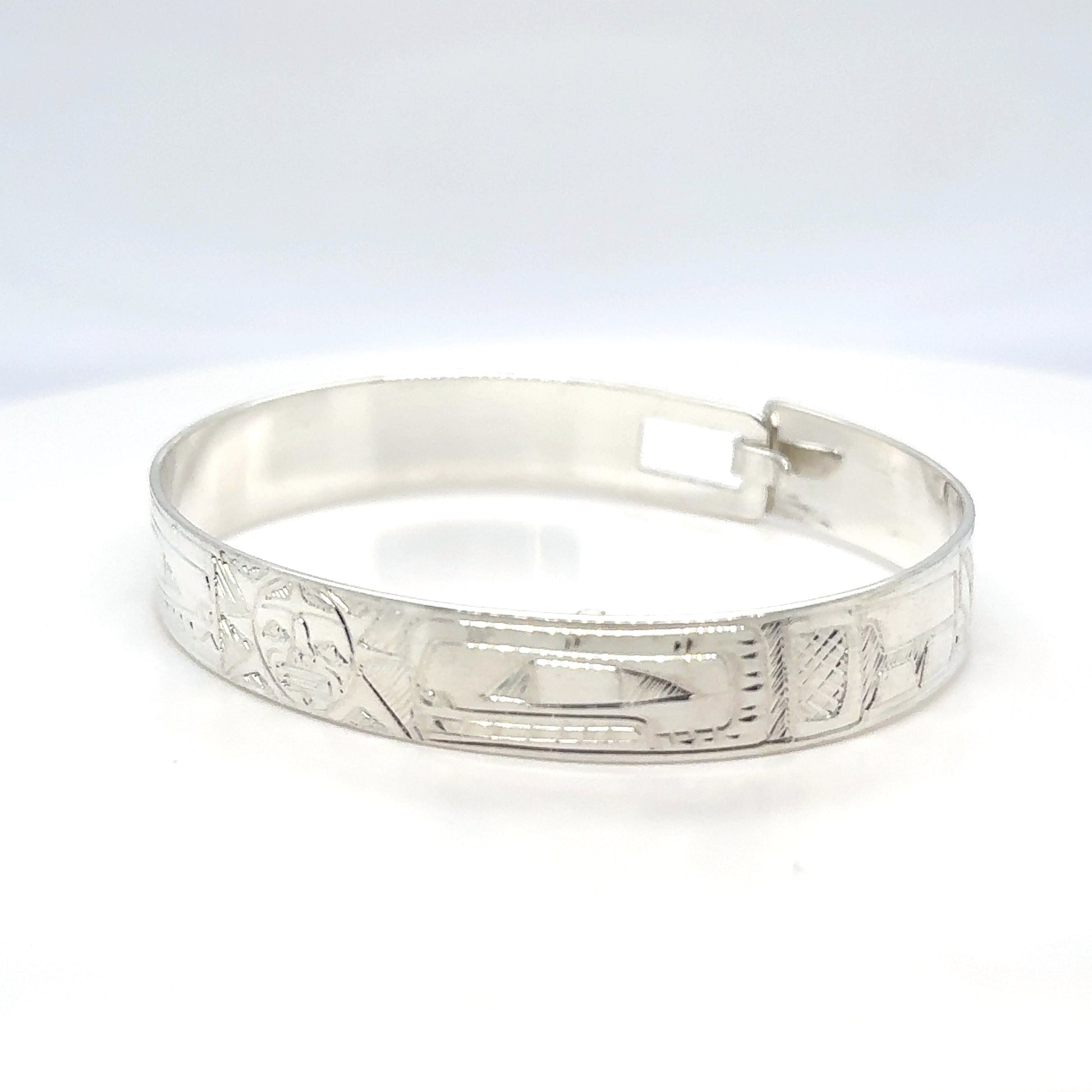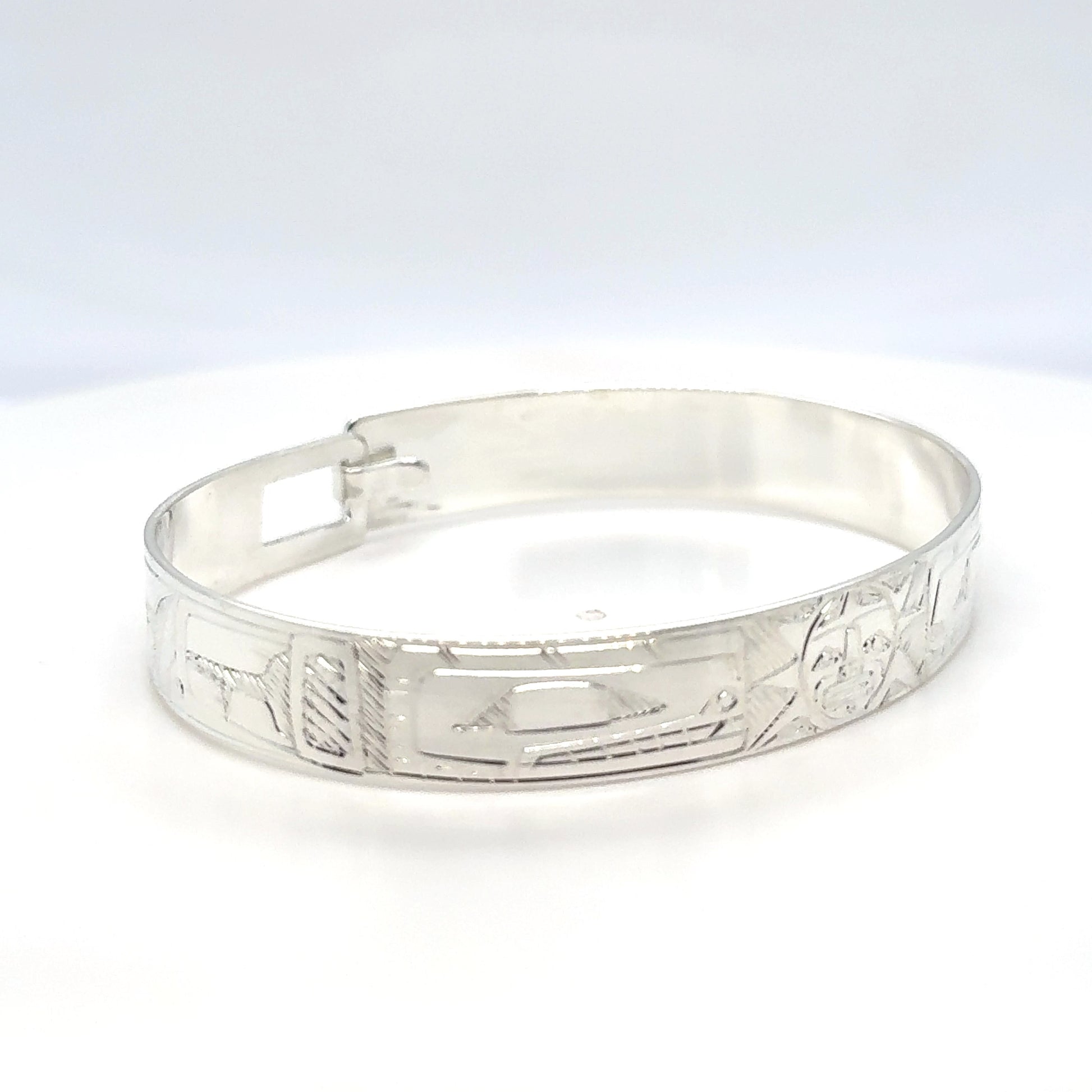 Handcarved and crafted sterling silver bangle by Gilbert Pat.