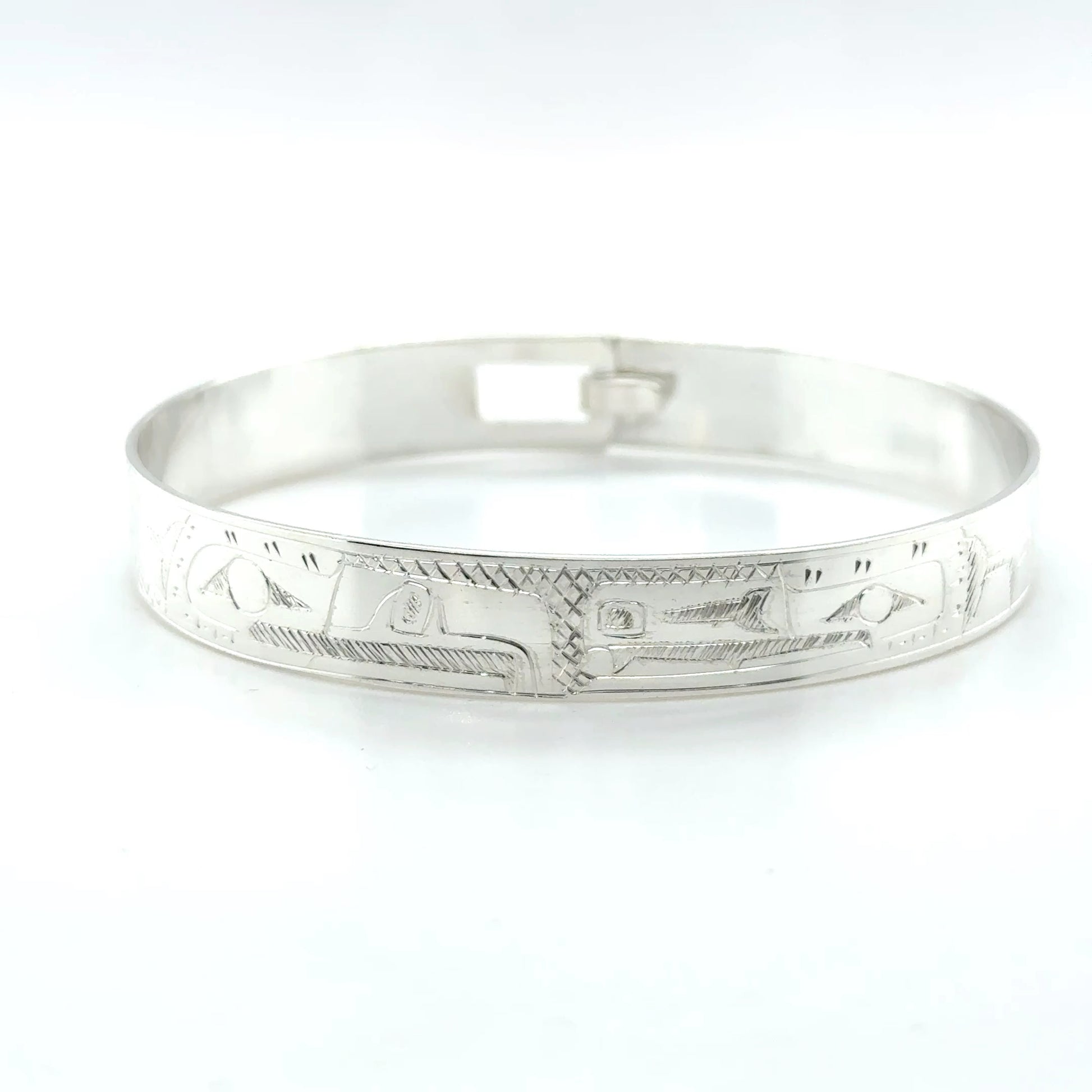 Bangle - Sterling Silver - 3/8" - Raven & Eagle - Shorter Length