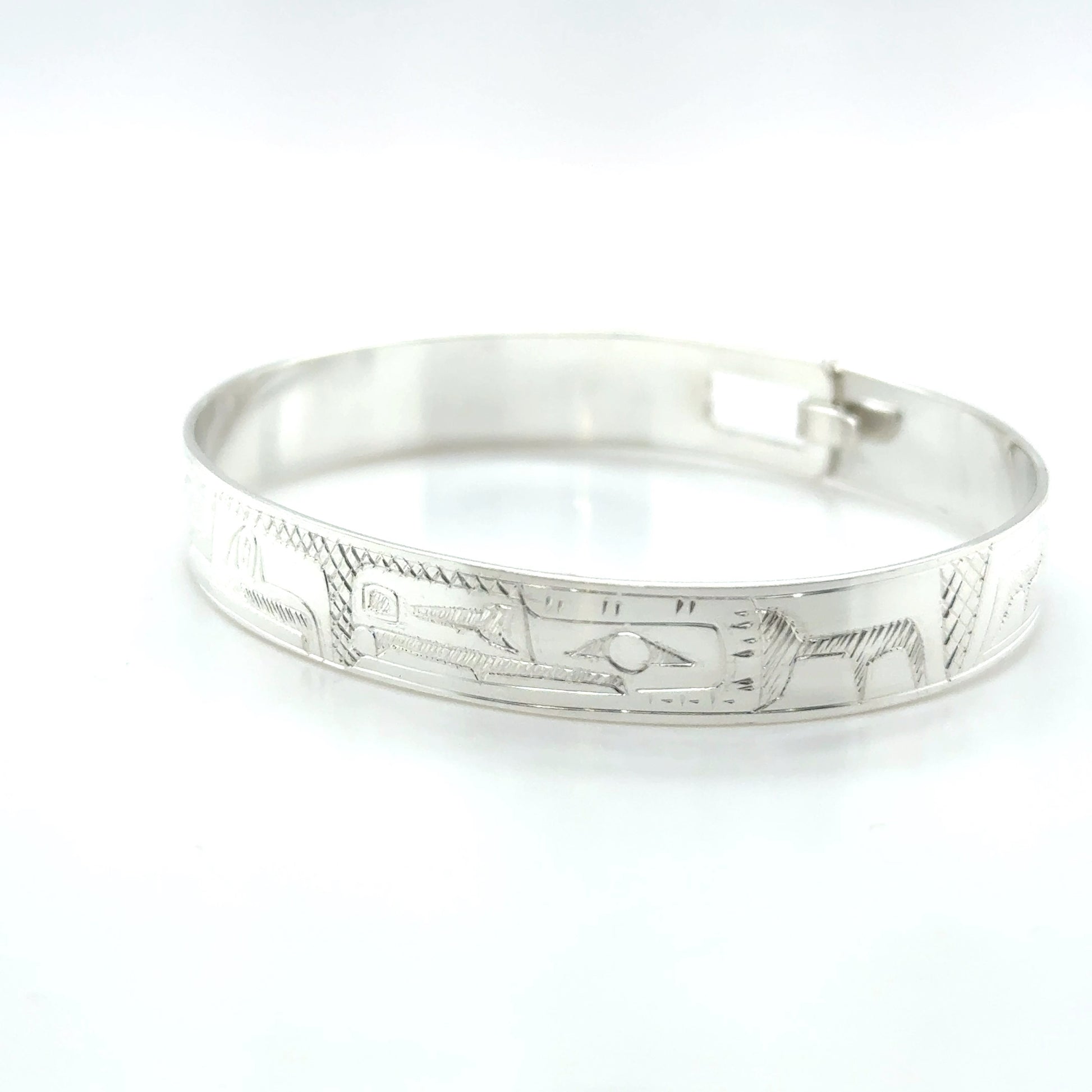 Hand-carved and crafted sterling silver bangle by Gilbert Pat.