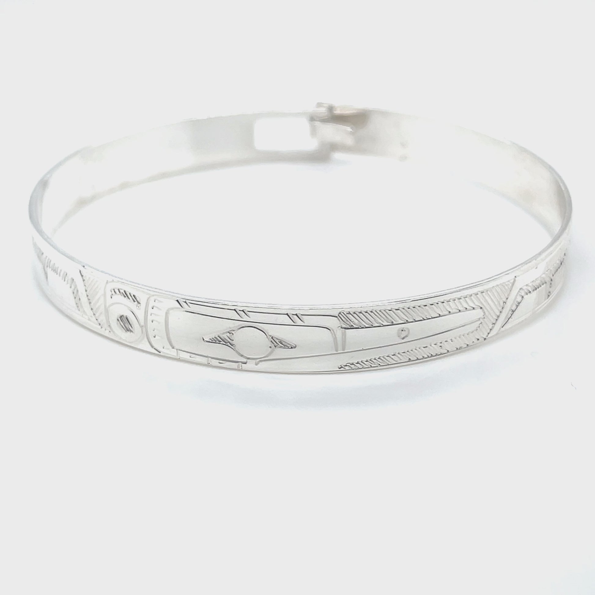 Handcarved and crafted sterling silver bangle by Gilbert Pat.