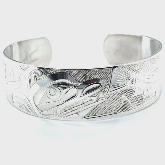 Bracelet - Sterling Silver - 3/4" - Bear & Salmon