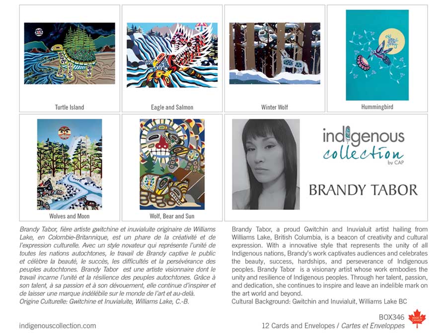 Brandy Tabor, a proud Gwitchin and Inuvialuit artist hailing from Williams Lake, British Columbia, is a beacon of creativity and cultural expression. With a innovative style that represents the unity of all Indigenous nations, Brandy’s work captivates audiences and celebrates the beauty, success, hardships, and perseverance of Indigenous peoples.