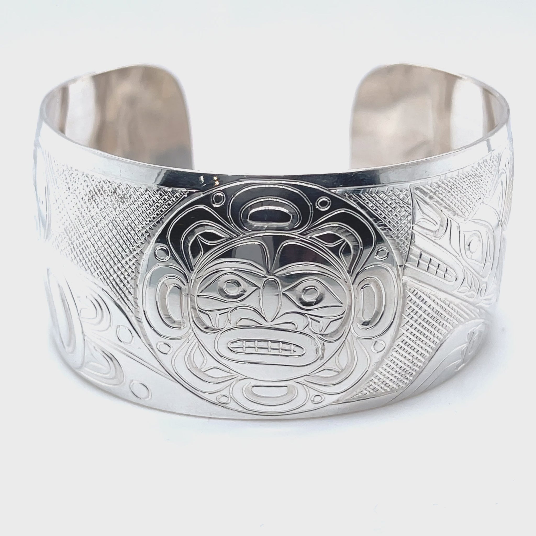 Bracelet - Sterling Silver - 1 1/4" - Eagle, Moon, & Wolf