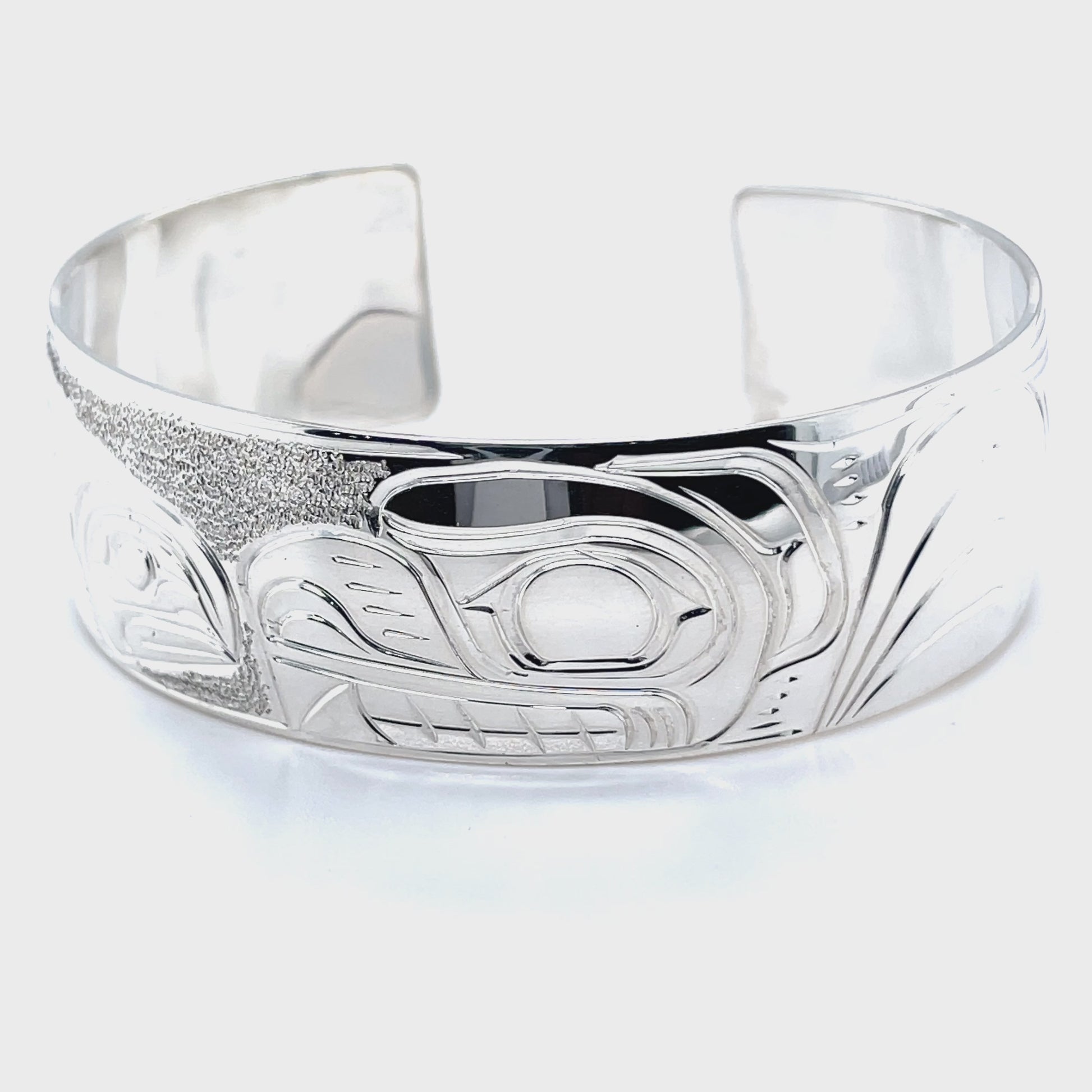 Bracelet - Sterling Silver - 3/4" - Bear & Salmon