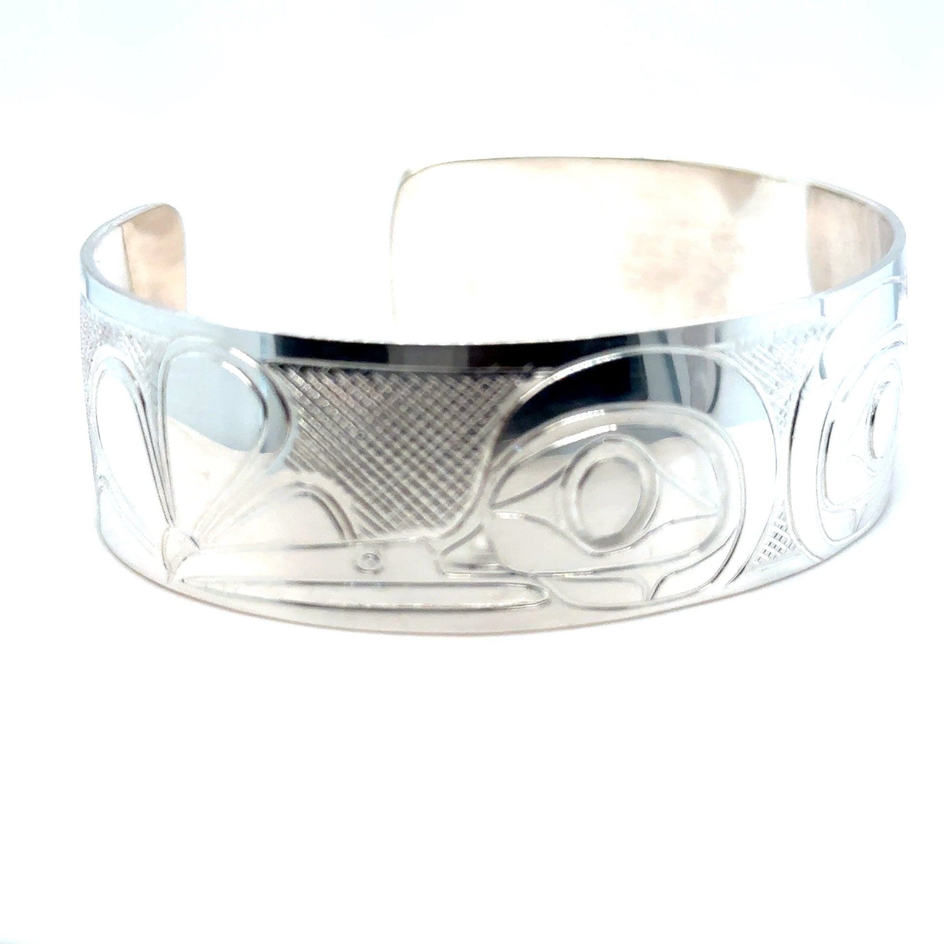 Don Lancaster, born in Alert Bay to a family of gold and silver carvers in 1965, is a renowned Northwest Coast jewellery artist and member of the Kwakwaka’wakw Nation, bearing the family crests of the Sun, Sisiutl (two-headed sea serpent), and the Wolf. An apprentice of celebrated carver Norman Seaweed, he has been carving since 1981 and has been one of the Wickaninnish Gallery’s artists for over 20 years. Many appreciate his work for its simple beauty and clarity of line.
