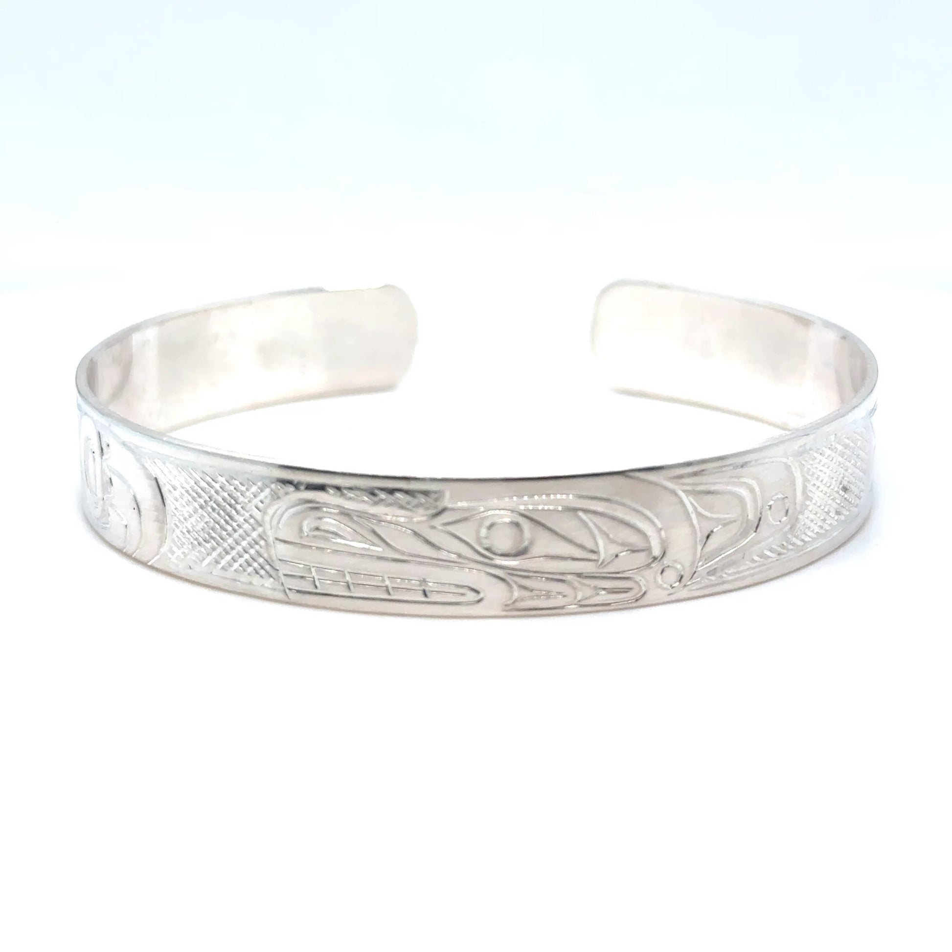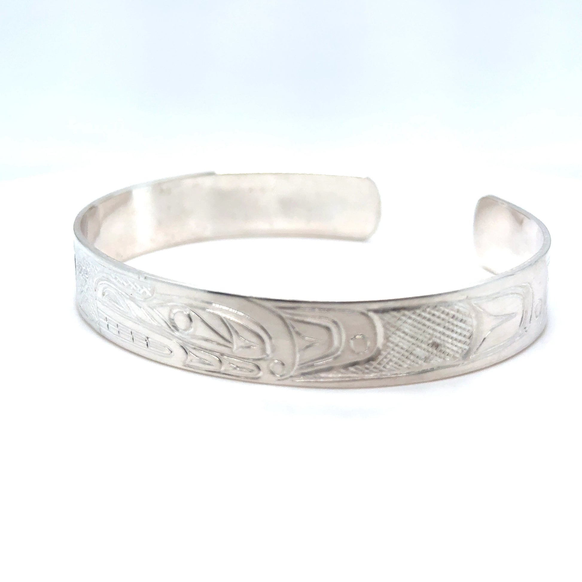 Don Lancaster, born in Alert Bay to a family of gold and silver carvers in 1965, is a renowned Northwest Coast jewellery artist and member of the Kwakwaka’wakw Nation, bearing the family crests of the Sun, Sisiutl (two-headed sea serpent), and the Wolf. An apprentice of celebrated carver Norman Seaweed, he has been carving since 1981 and has been one of the Wickaninnish Gallery’s artists for over 20 years. Many appreciate his work for its simple beauty and clarity of line.