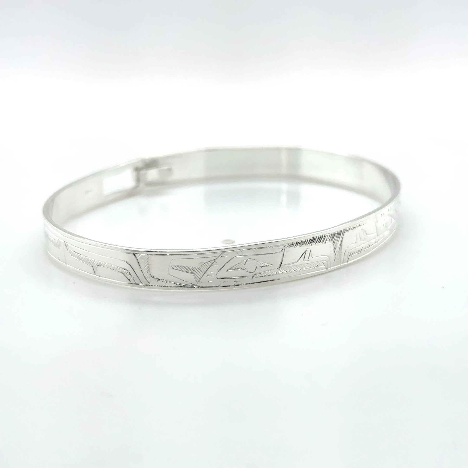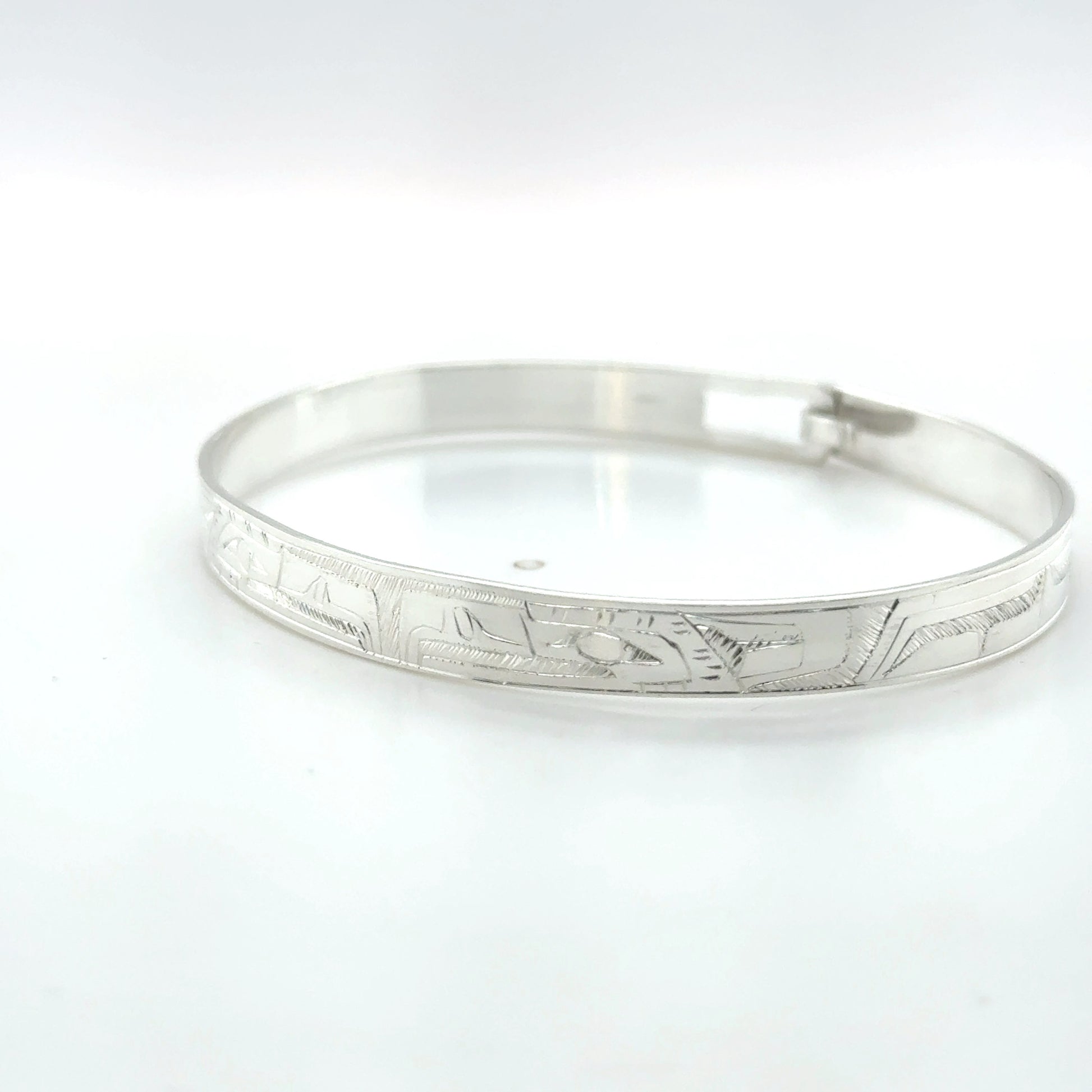 Hand-carved and crafted sterling silver bangle by Gilbert Pat.