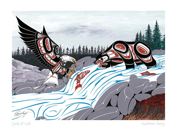 Richard was born in Whitehorse, Yukon Territory in 1959 and belongs to Northern Tuchone Tribe. Richard is a self-taught artist. He originally started painting wildlife at an early age along with painting his favourite rock star or sports idol. In 1978, Richard moved to Vancouver.