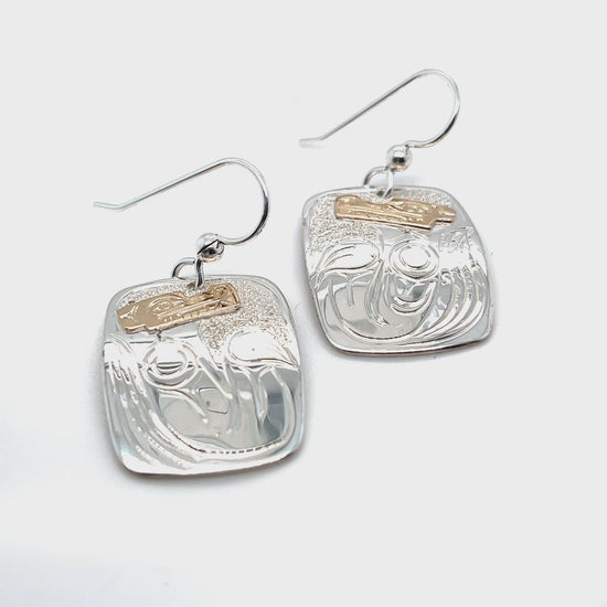 Authentic, handcrafted, original sterling silver and 14kt yellow gold earrings