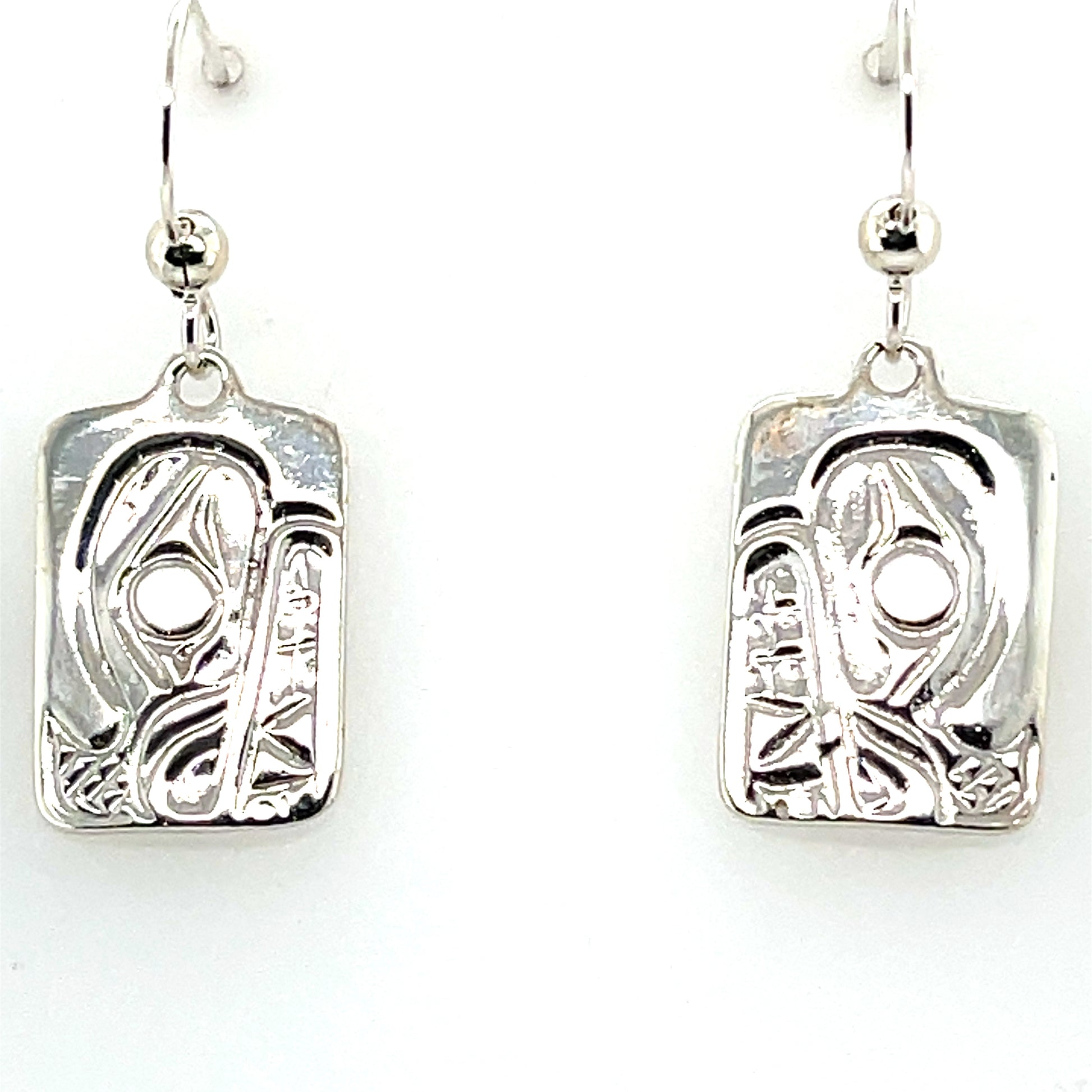 Earrings - Sterling Silver - Cast - Drop - Rectangle - Bear