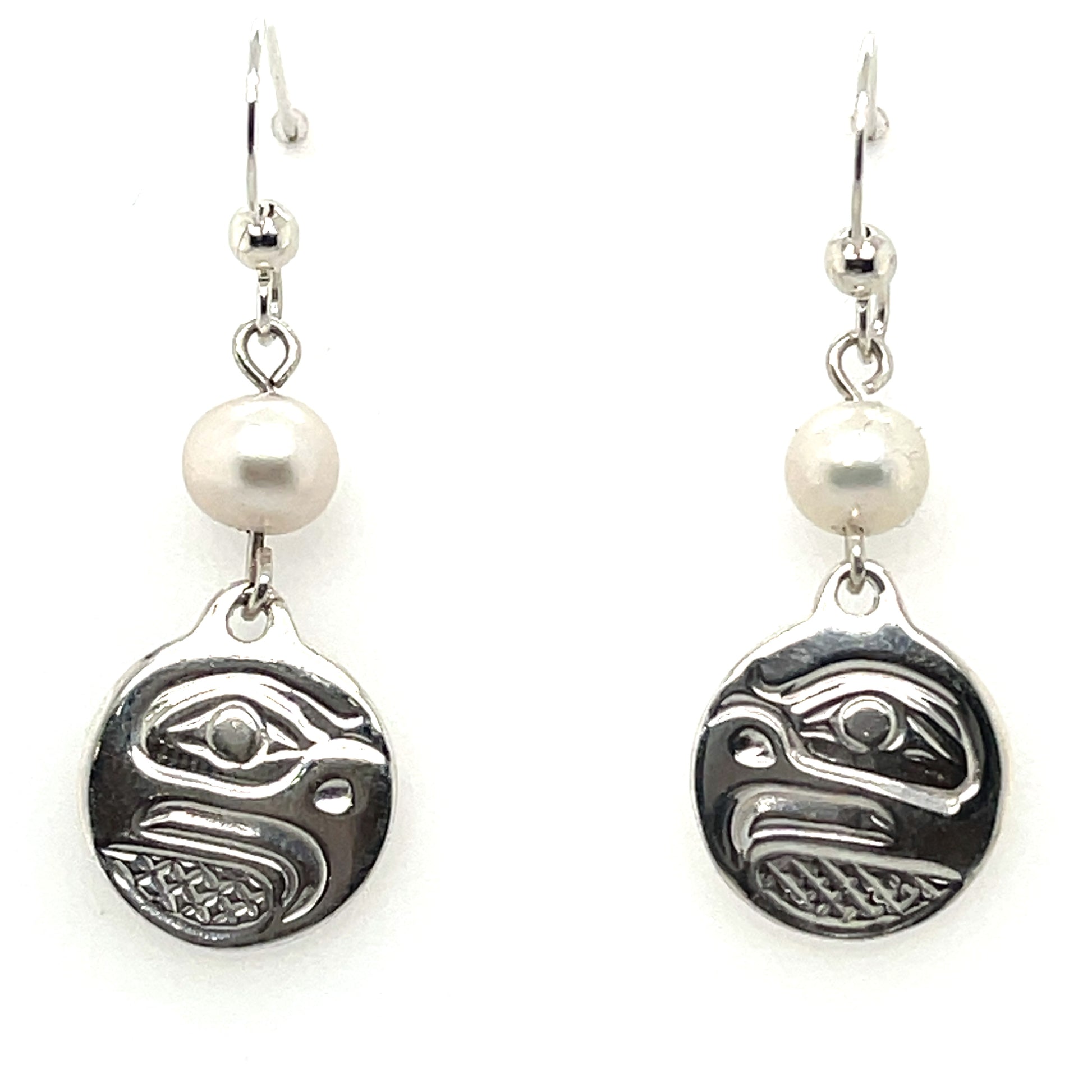Earrings - Sterling Silver - Cast - Drop - Small - Round - Eagle - Pearl
