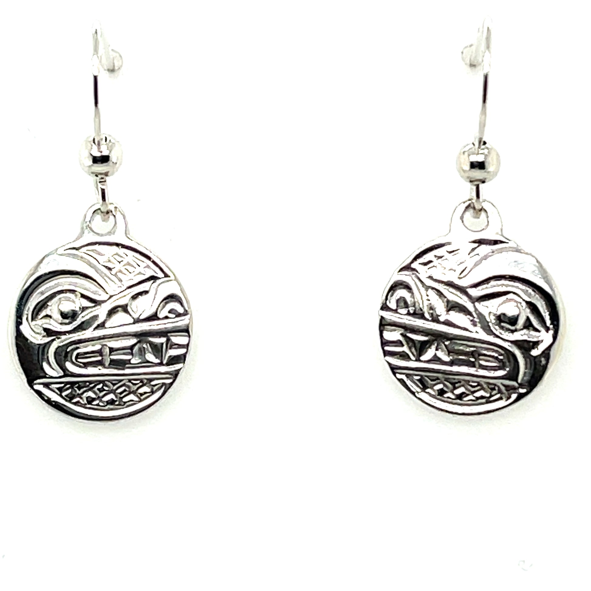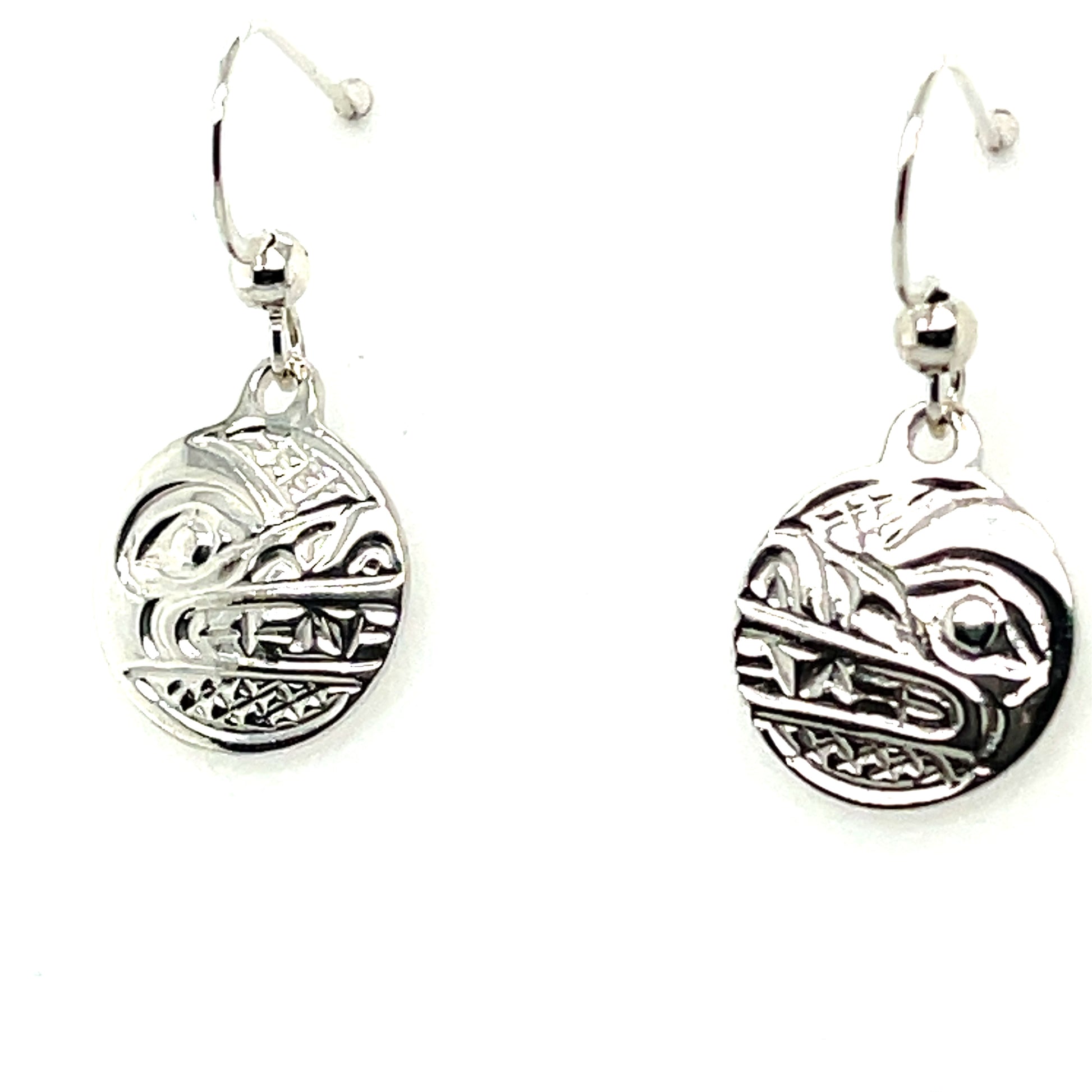 Earrings - Sterling Silver - Cast - Drop - Small - Round - Wolf