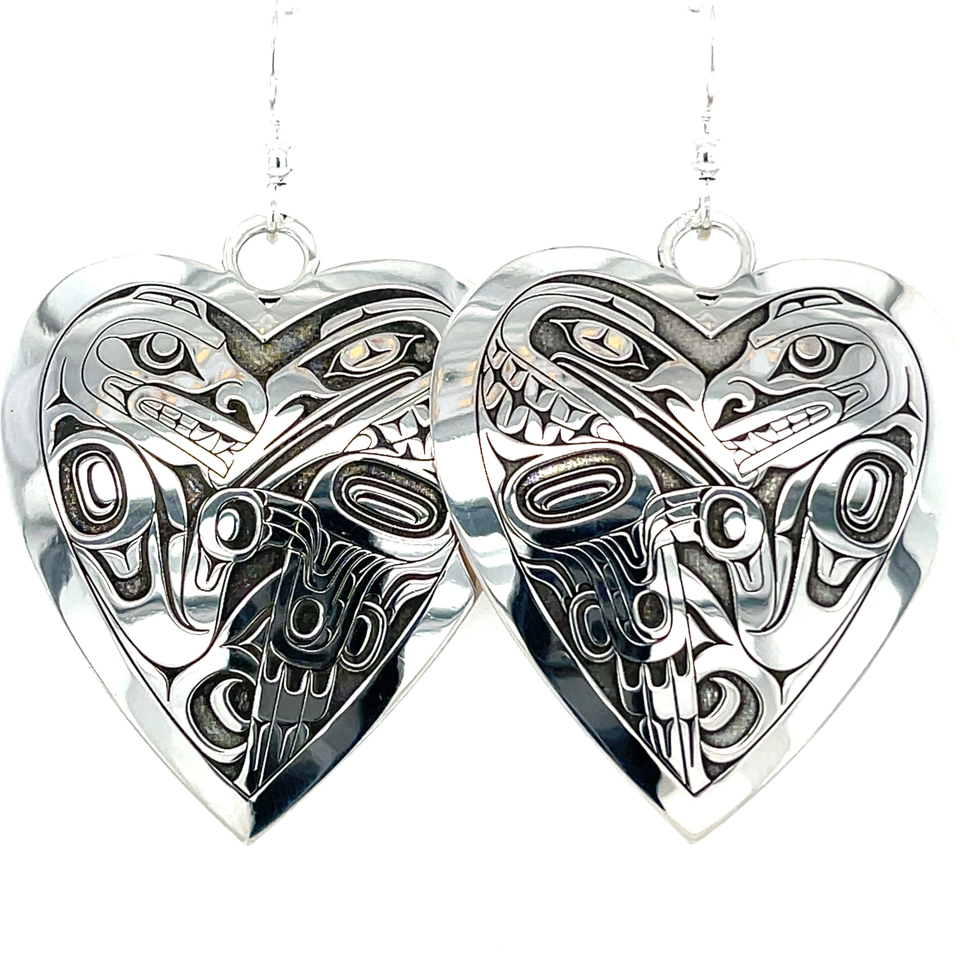 Earrings - Sterling Silver - Heart - Bear Raven - Large