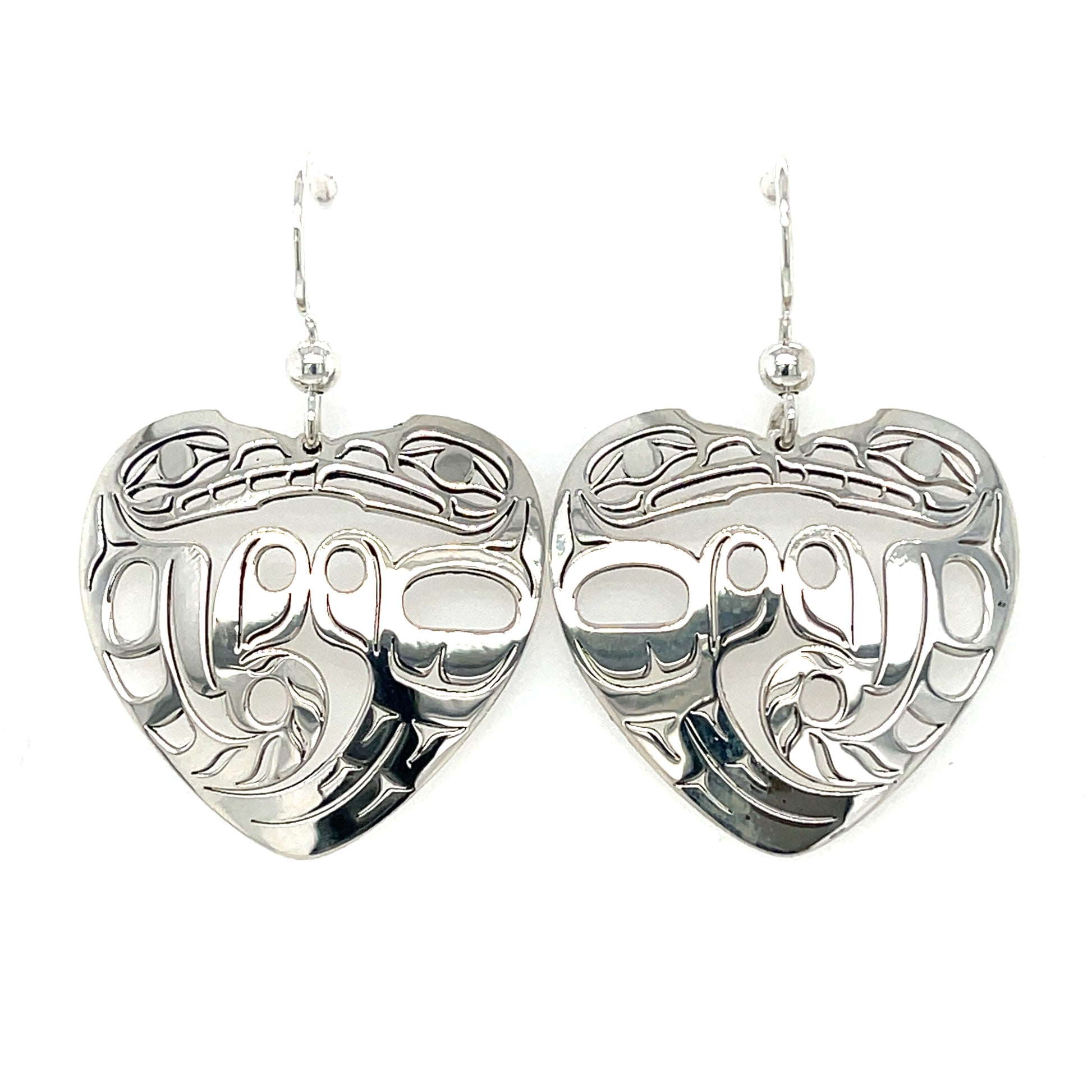 Earrings - Sterling Silver - Heart - Wolf Eagle