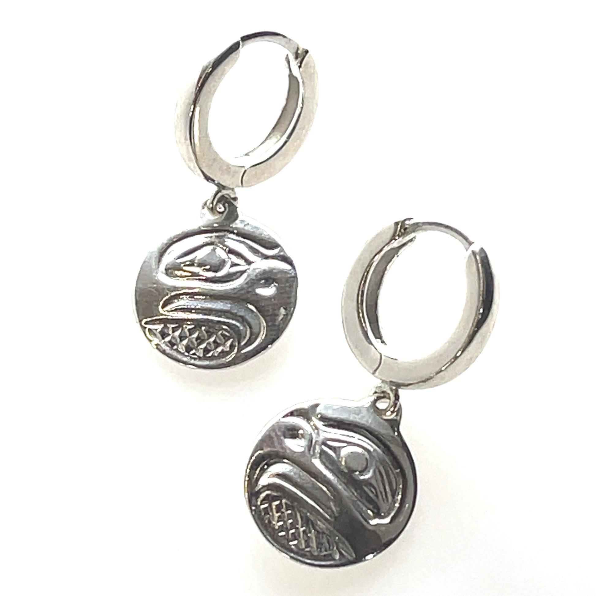 Indigenous-made, sterling silver sleeper earrings created using lost wax casting, featuring a secure closure.
