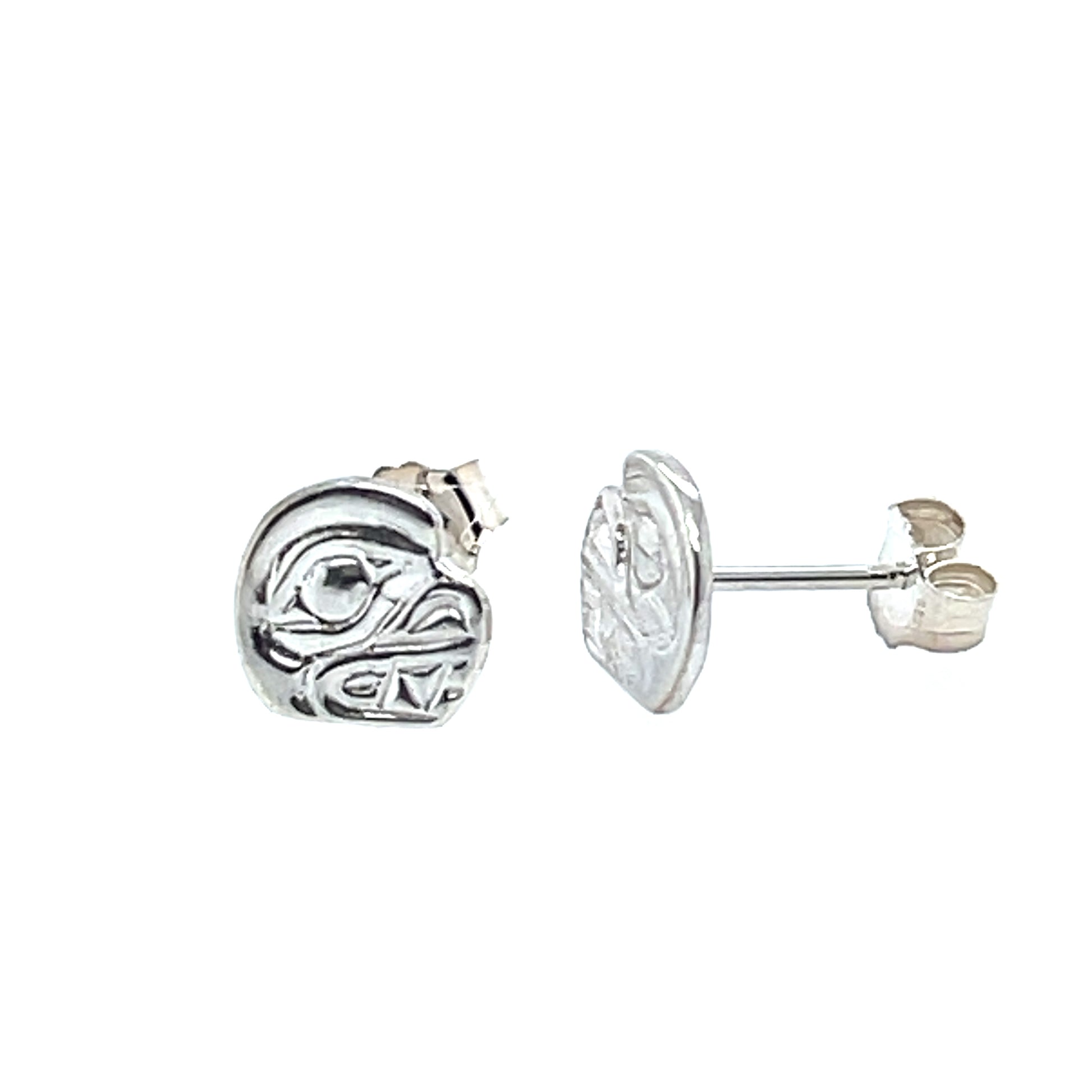 Indigenous-made, sterling silver earrings made by lost wax casting.