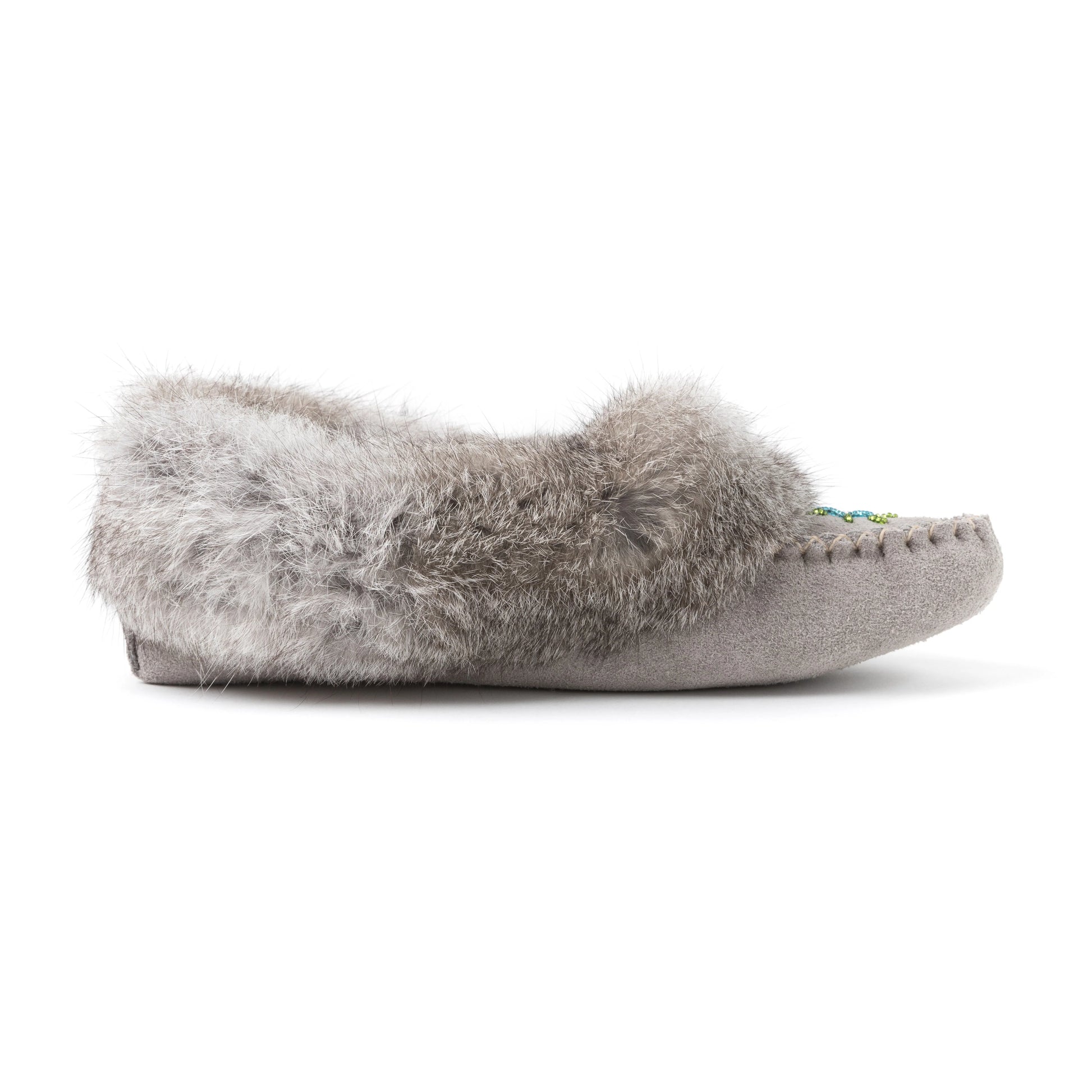 Moccasins - Ladies' - Grey Suede - Grey Rabbit Fur - TÄNIONNIENHA’