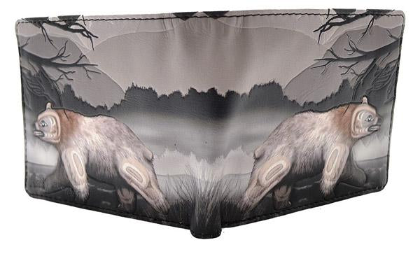 Bifold men's wallets are made from polyurethane and measure 3.75" x 4.5", featuring 9 card slots, 1 clear plastic slot, 2 money slots, and 3 additional pockets.
