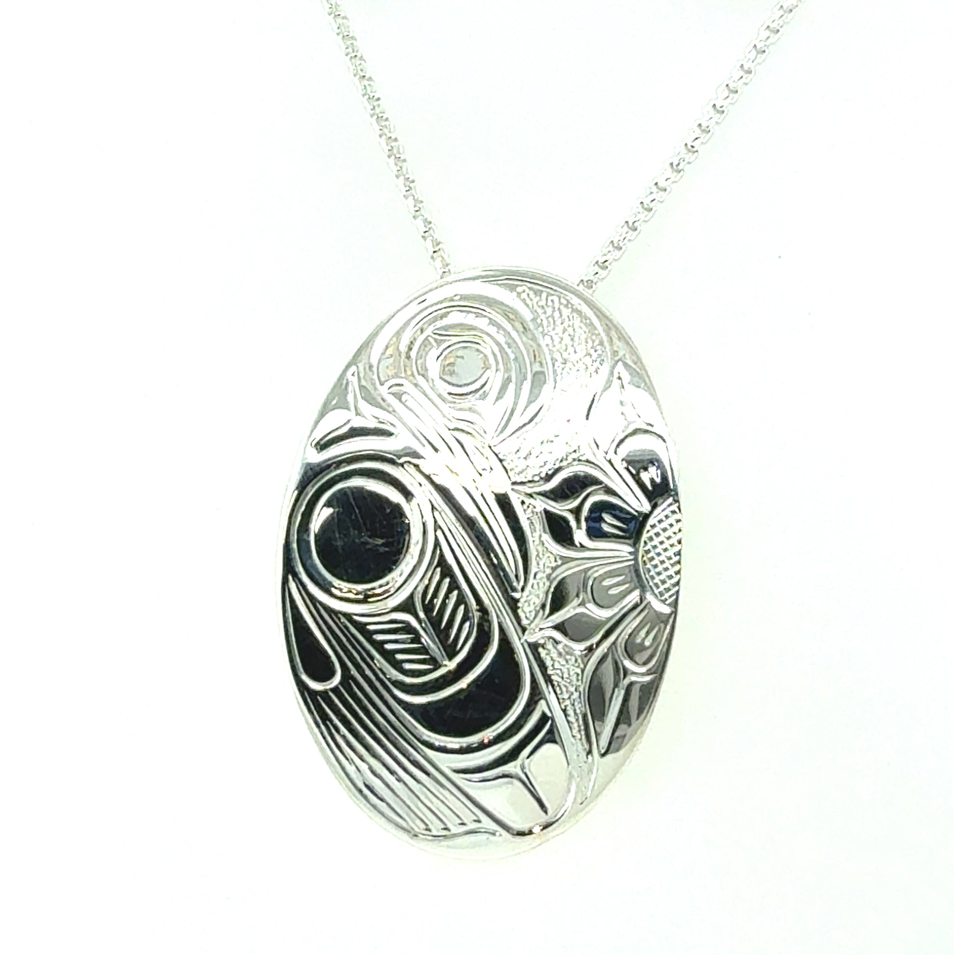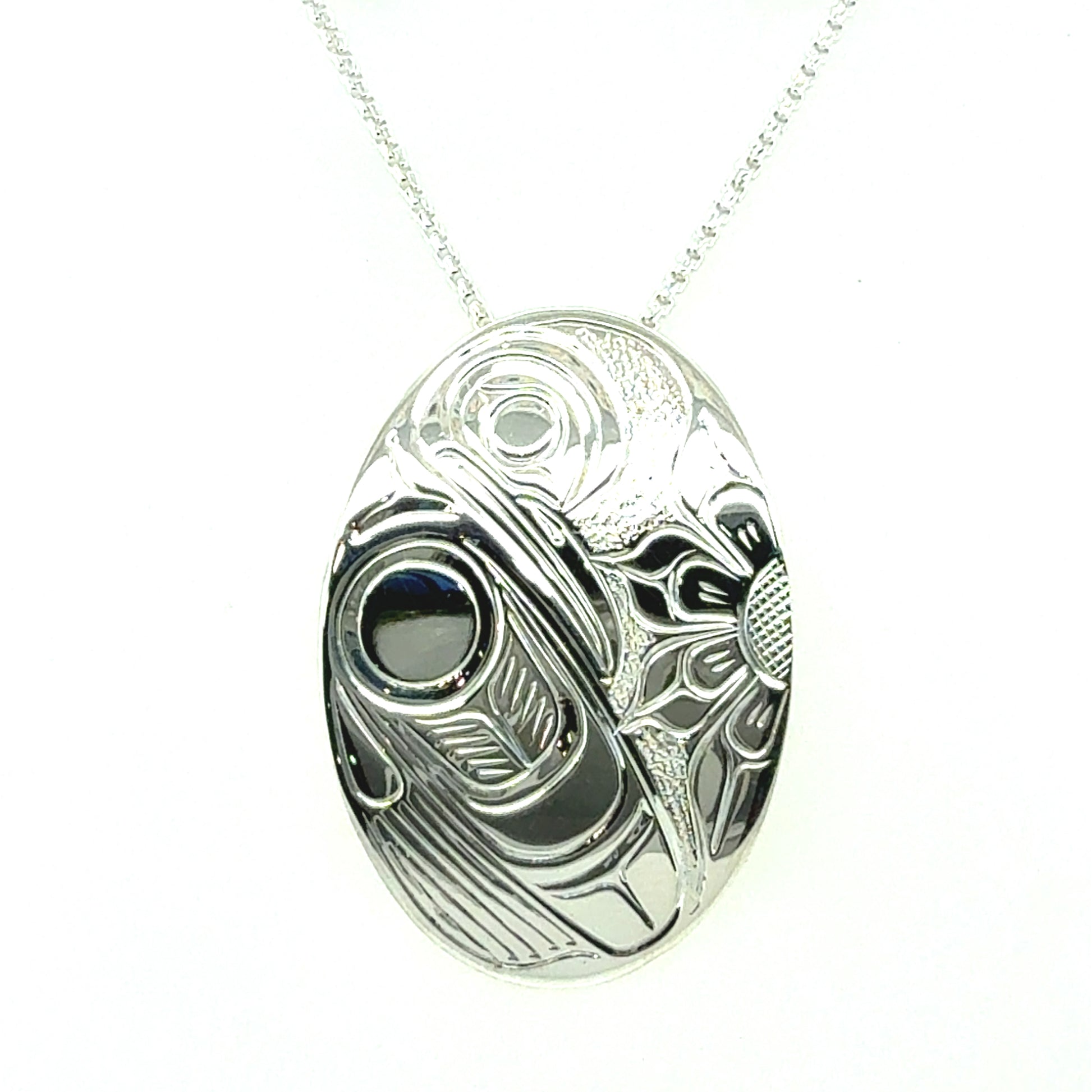 Mike Matilpi, born in Alert Bay to the Kwakwaka’wakw Nation and a family of revered wood and jewellery carvers, has been carving silver and gold jewellery since 1993. He was taught by his father, Charles Harper, himself a well-known carver who has been working since 1974. Mike has also been greatly influenced by other relatives of his, such as Doug Harper, Glen Harper, Les Harper, George Matilpi, Dennis Matilpi, and Paddy Seaweed. He has taken many specialized courses in silversmithing to further his craft, including bezel stone setting. His work can be recognized by the masterful combination of gold and silver and the charming and traditional animal designs.