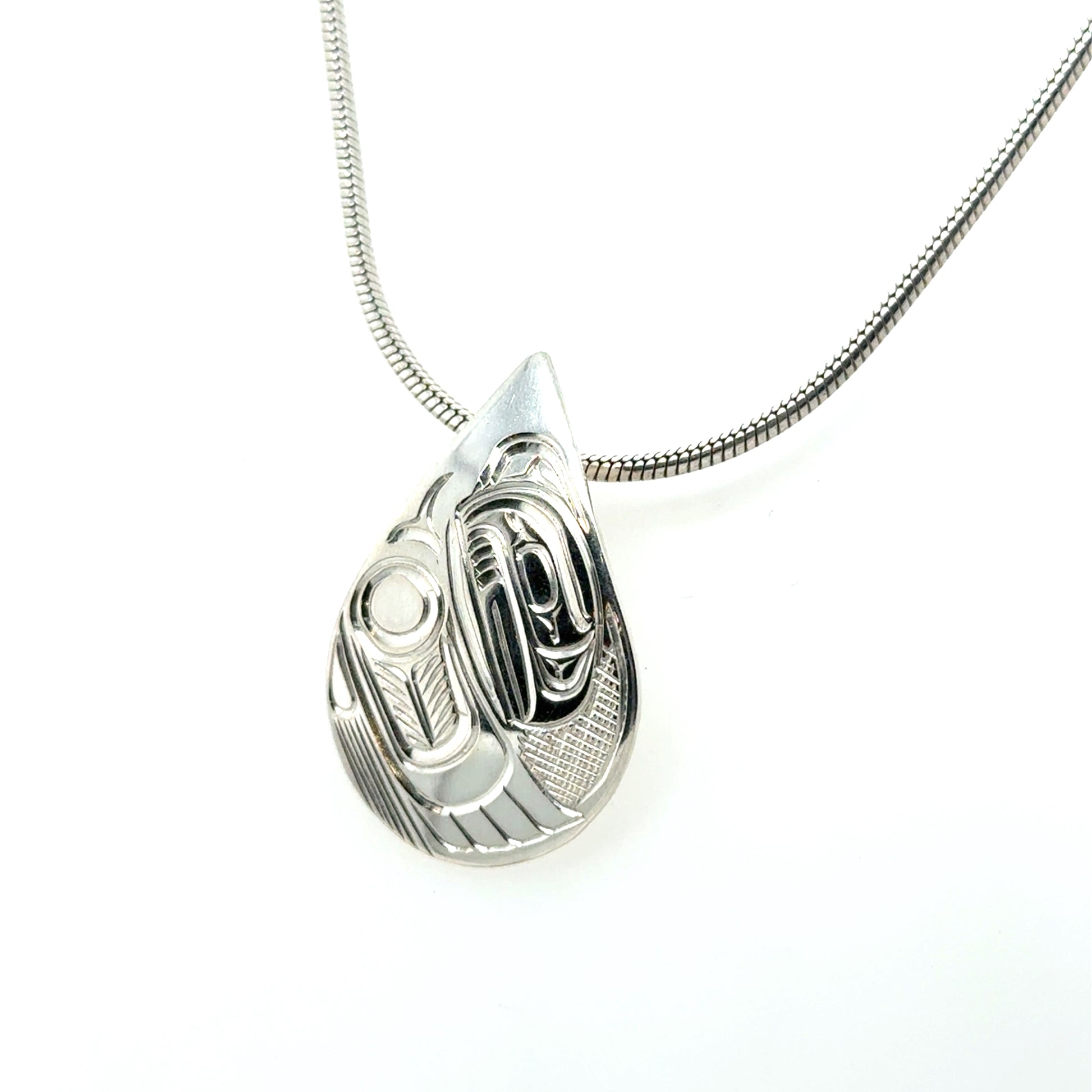Indigenous-made, sterling silver pendant made by lost wax casting.