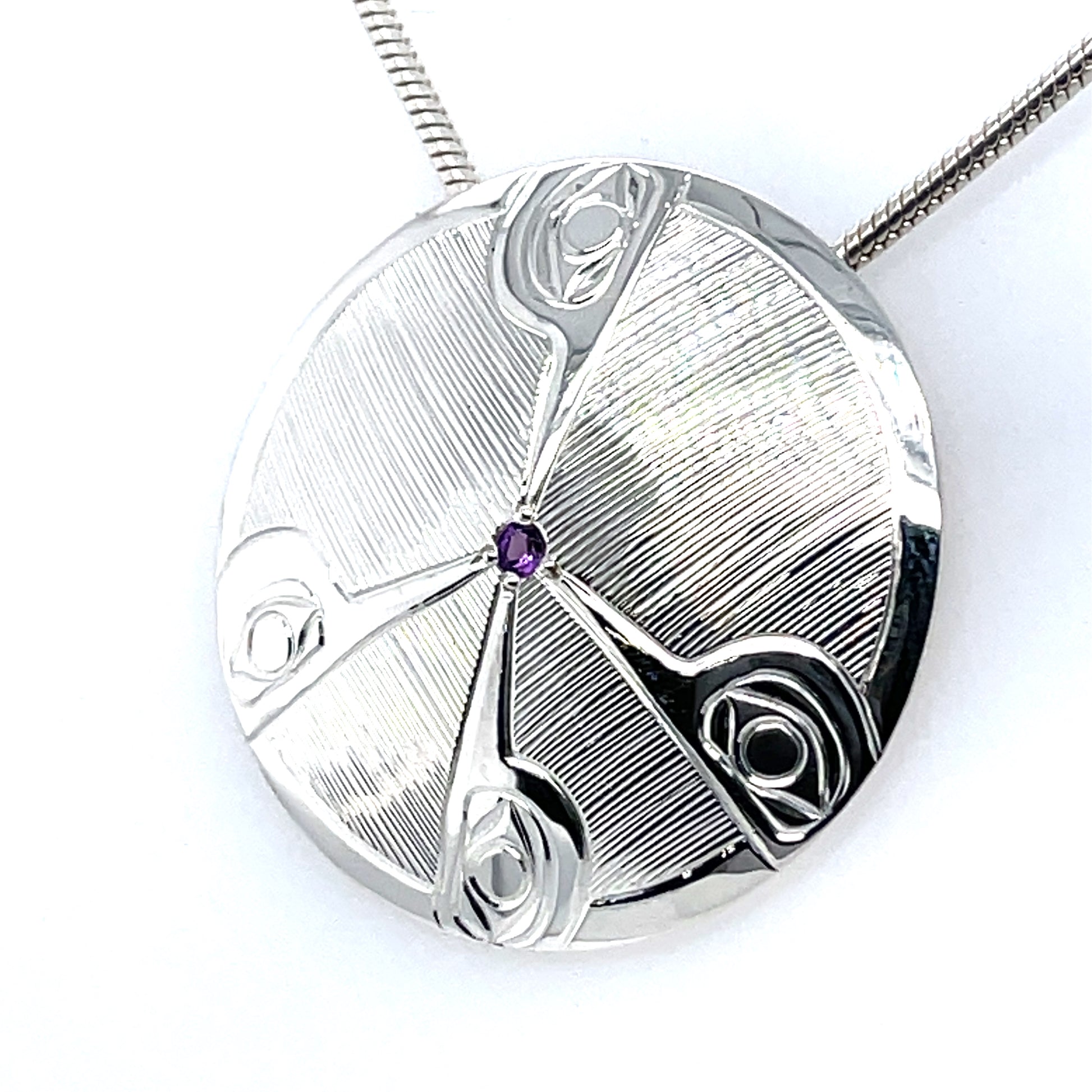 Pendant - Sterling Silver - Hummingbird Peace Sign - Amethyst