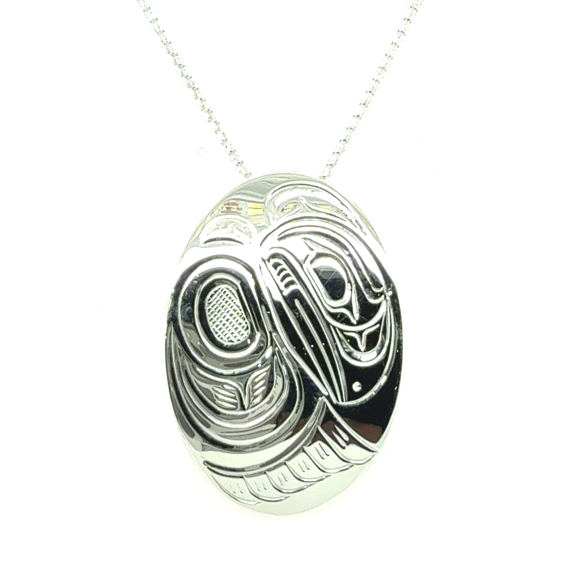 Pendant - Sterling Silver - Oval - Raven
