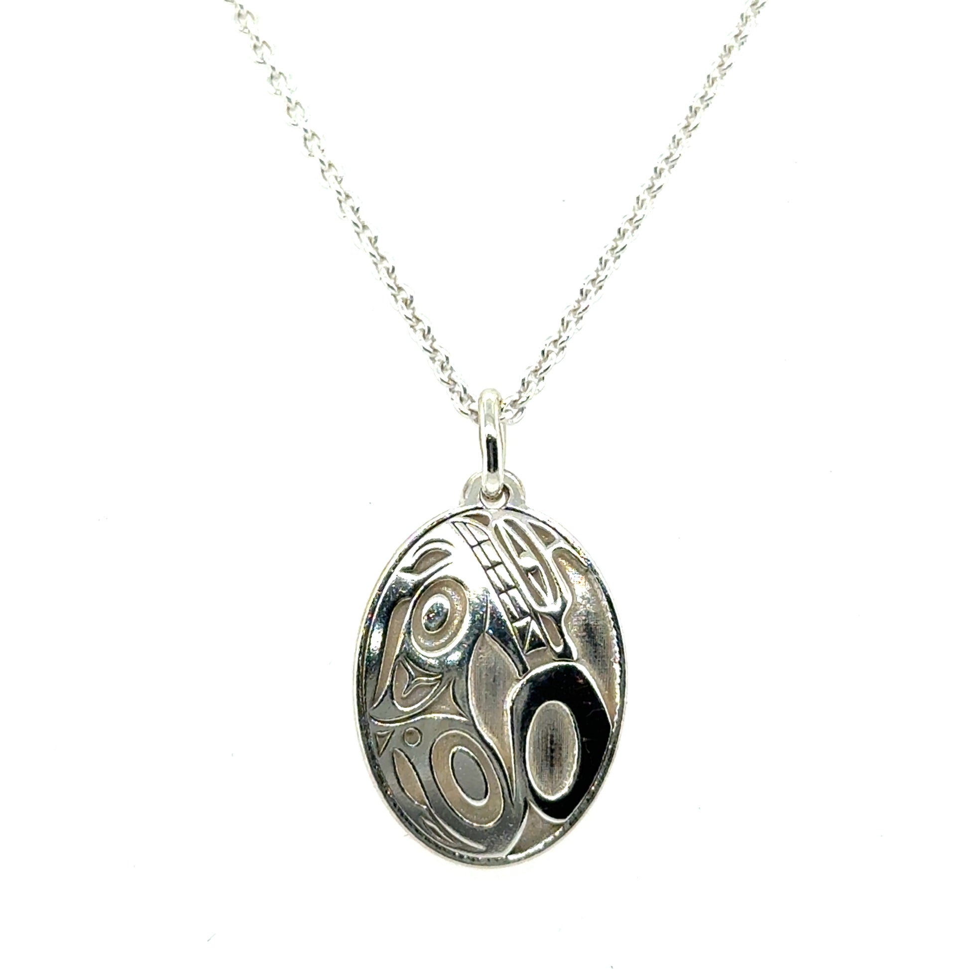 Pendant - Sterling Silver - Oval - Wolf - Mini - 19mm