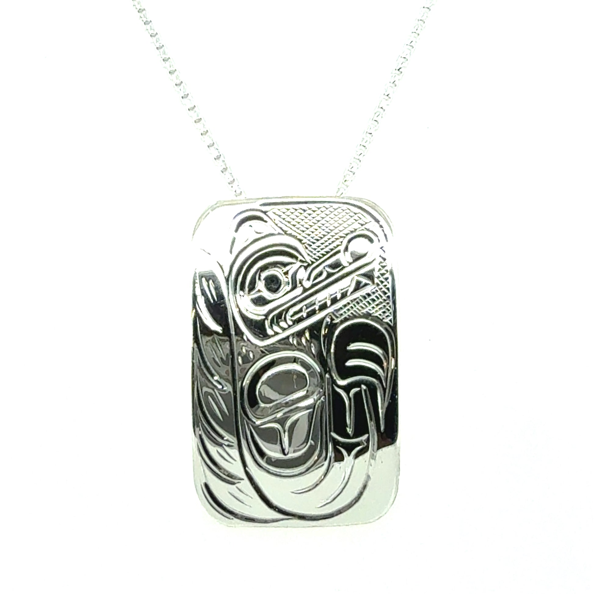 Mike Matilpi, born in Alert Bay to the Kwakwaka’wakw Nation and a family of revered wood and jewellery carvers, has been carving silver and gold jewellery since 1993. He was taught by his father, Charles Harper, himself a well-known carver who has been working since 1974. Mike has also been greatly influenced by other relatives of his, such as Doug Harper, Glen Harper, Les Harper, George Matilpi, Dennis Matilpi, and Paddy Seaweed. He has taken many specialized courses in silversmithing to further his craft, including bezel stone setting. His work can be recognized by the masterful combination of gold and silver and the charming and traditional animal designs.