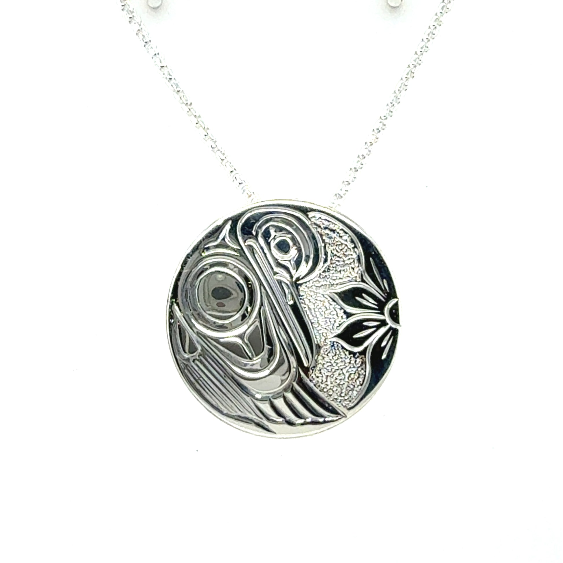 Mike Matilpi, born in Alert Bay to the Kwakwaka’wakw Nation and a family of revered wood and jewellery carvers, has been carving silver and gold jewellery since 1993. He was taught by his father, Charles Harper, himself a well-known carver who has been working since 1974. Mike has also been greatly influenced by other relatives of his, such as Doug Harper, Glen Harper, Les Harper, George Matilpi, Dennis Matilpi, and Paddy Seaweed. He has taken many specialized courses in silversmithing to further his craft, including bezel stone setting. His work can be recognized by the masterful combination of gold and silver and the charming and traditional animal designs.