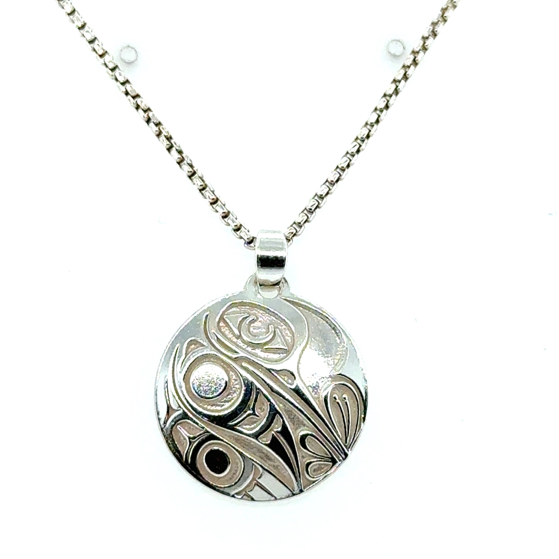 Pendant - Sterling Silver - Round - Hummingbird - Small - 20mm