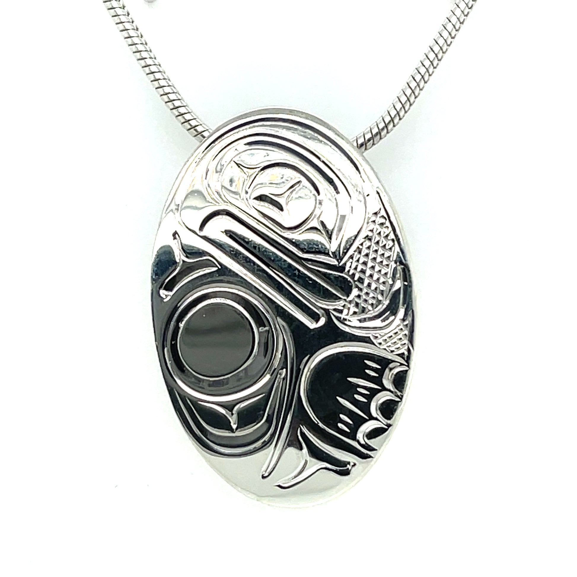 Mike Matilpi, born in Alert Bay to the Kwakwaka’wakw Nation and a family of revered wood and jewellery carvers, has been carving silver and gold jewellery since 1993. He was taught by his father, Charles Harper, himself a well-known carver who has been working since 1974. Mike has also been greatly influenced by other relatives of his, such as Doug Harper, Glen Harper, Les Harper, George Matilpi, Dennis Matilpi, and Paddy Seaweed. He has taken many specialized courses in silversmithing to further his craft, including bezel stone setting. His work can be recognized by the masterful combination of gold and silver and the charming and traditional animal designs.