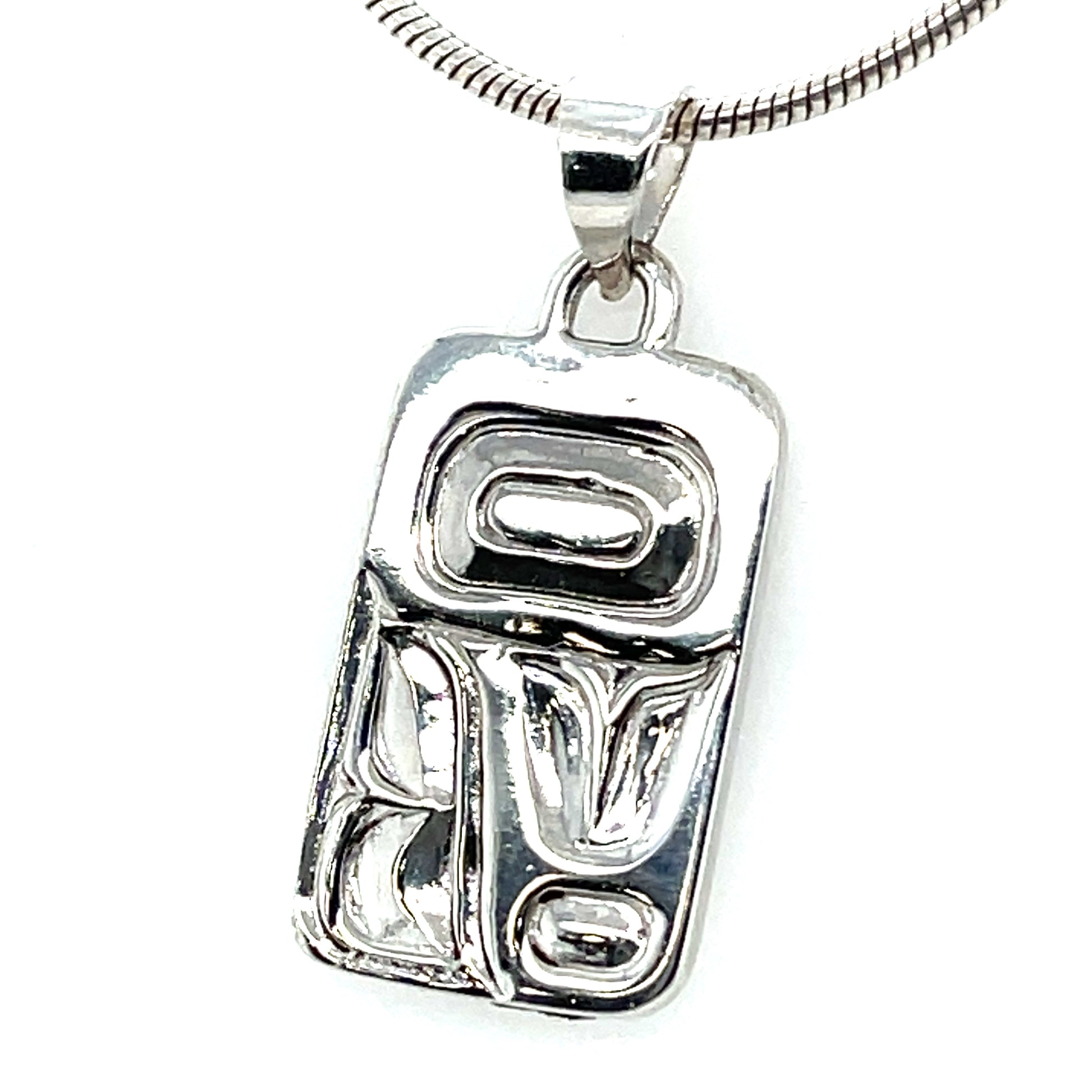Cast sterling silver pendant by Kwakwaka’wakw and Cree artist Carrie Matilpi of Alert Bay, BC.