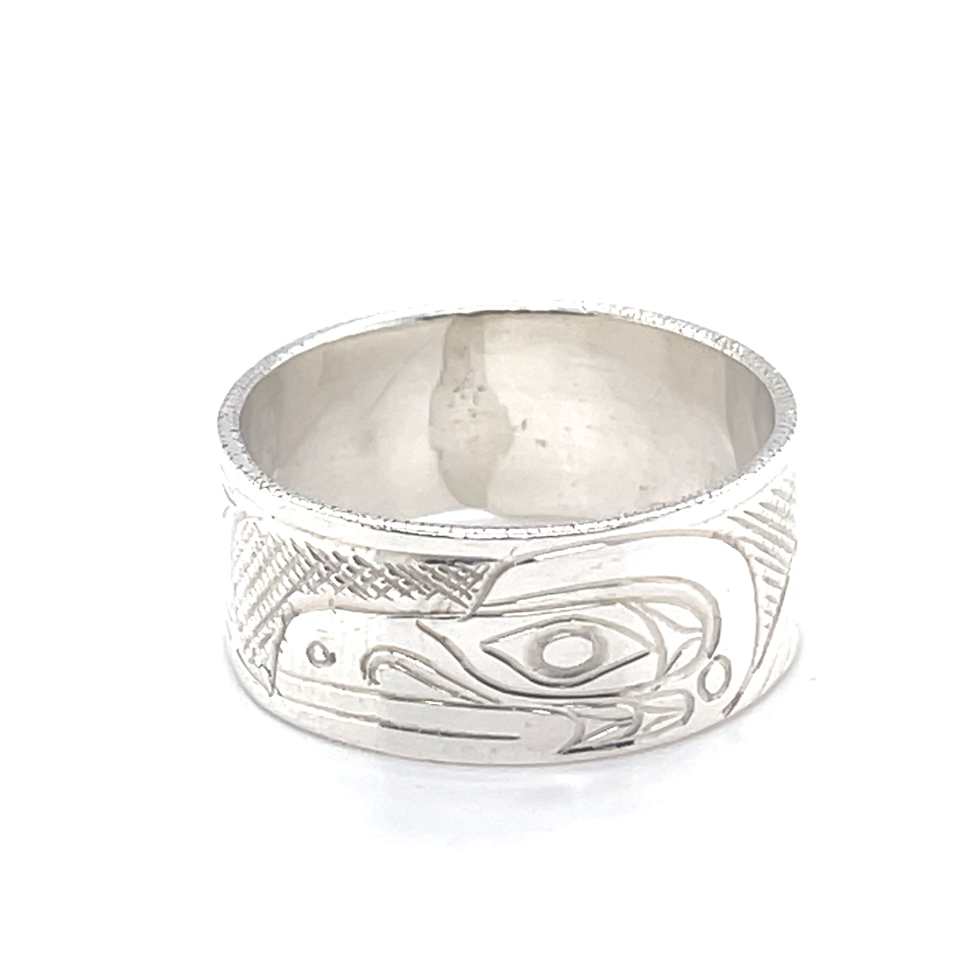 Don Lancaster, born in Alert Bay to a family of gold and silver carvers in 1965, is a renowned Northwest Coast jewellery artist and member of the Kwakwaka’wakw Nation, bearing the family crests of the Sun, Sisiutl (two-headed sea serpent), and the Wolf. An apprentice of celebrated carver Norman Seaweed, he has been carving since 1981 and has been one of the Wickaninnish Gallery’s artists for over 20 years. Many appreciate his work for its simple beauty and clarity of line.