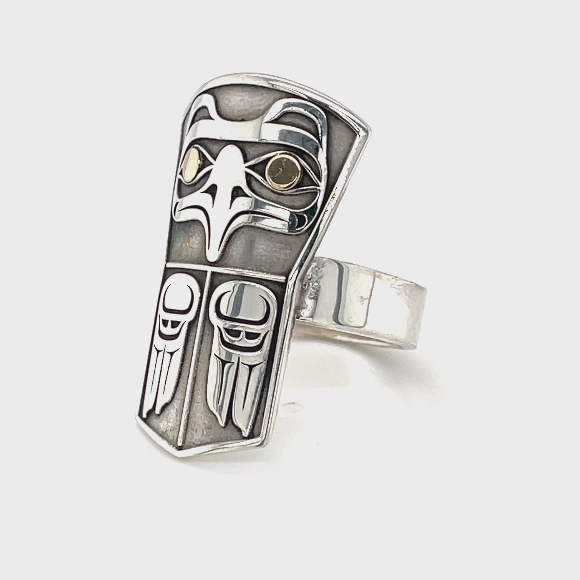 Ring - Sterling Silver & Gold - Shield - Eagle - Size 8