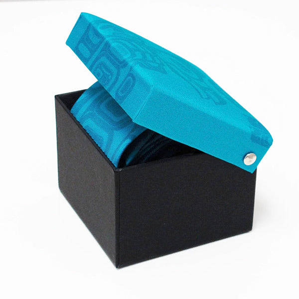 Ties are printed on silk, complemented with the artist's signature on the back, and packaged in an elegant silk-topped box matching the tie's design.