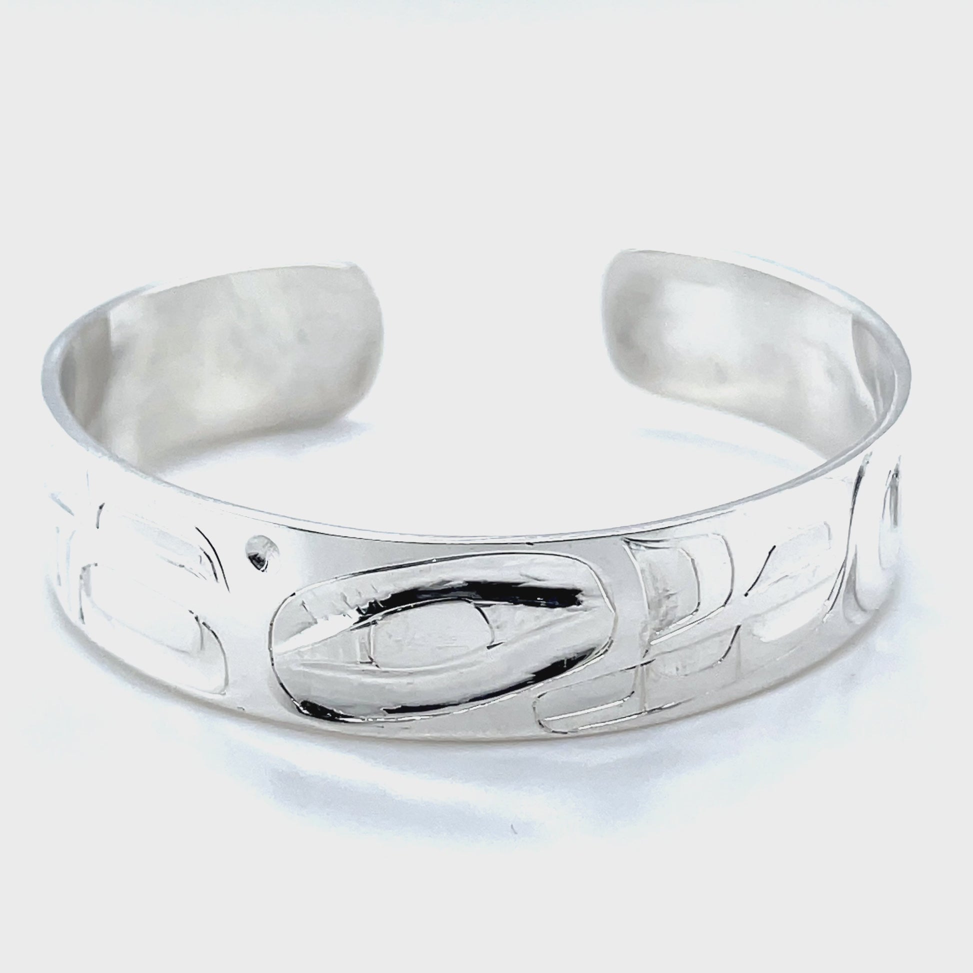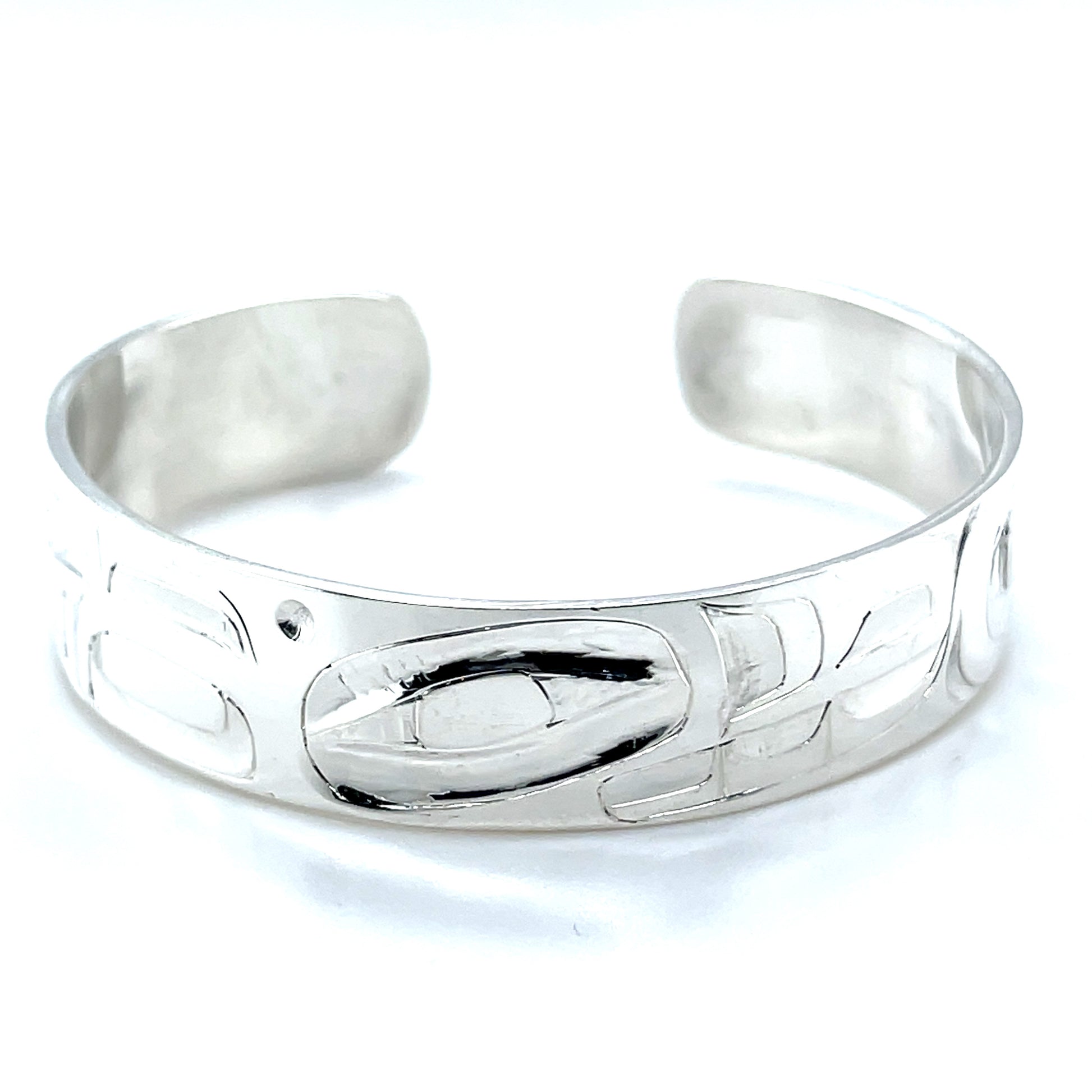 Handcrafted sterling silver bracelet by Haida artist Alvin Adkins.
